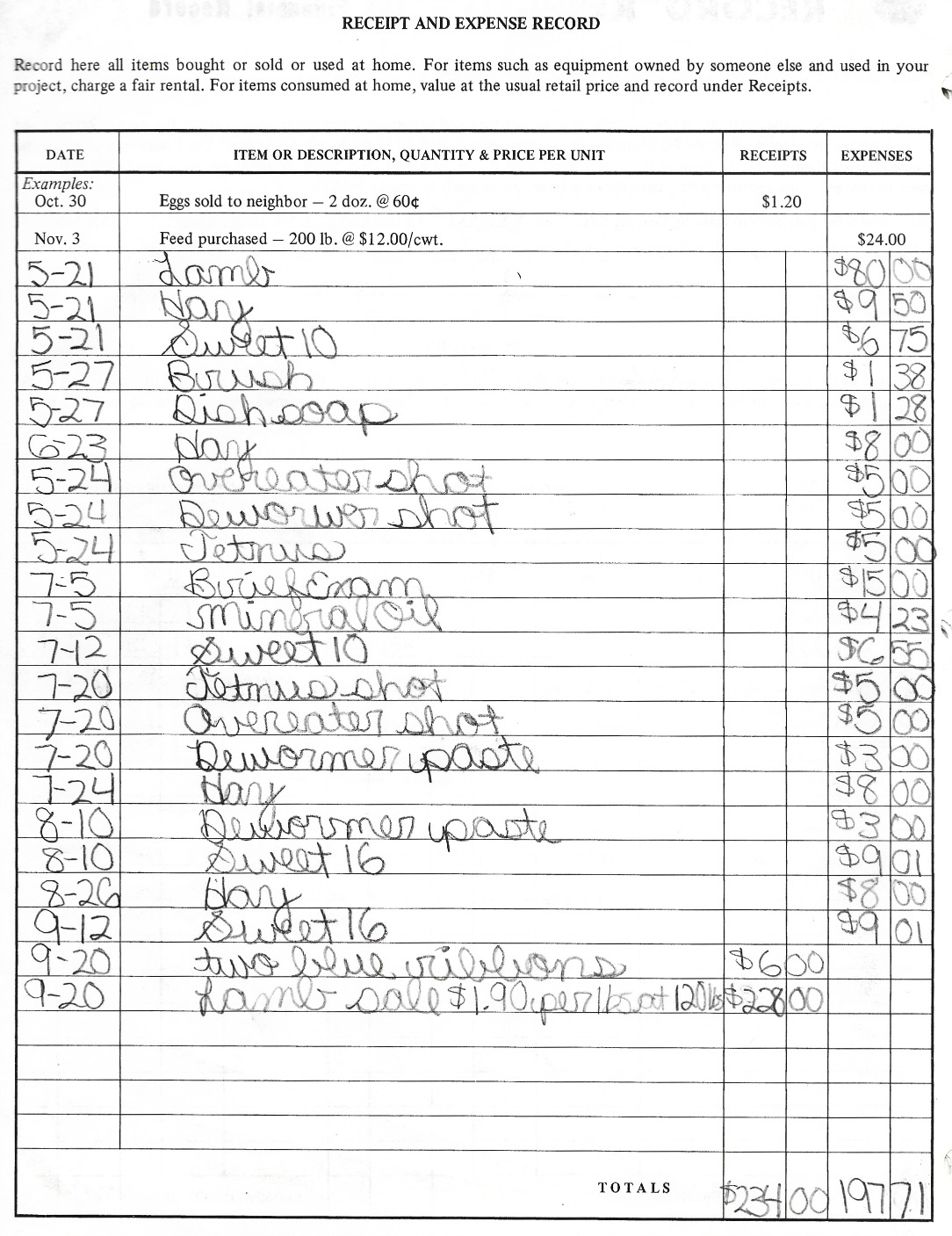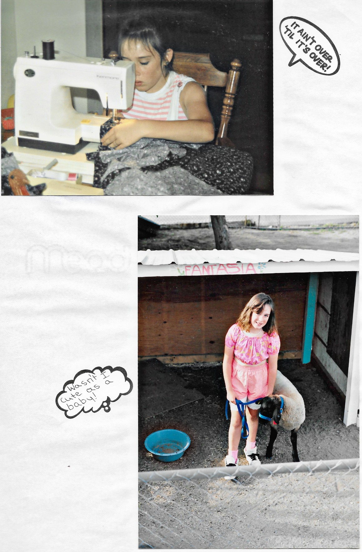Written by me at age 10: “My name is Heather and I am 10 years old, I love animals, I like to sew and make crafts. Also, I live with my mom and dad and I have two brothers. I joined 4-H just for fun and so that I would have something to do. I am in two clubs the Baas and the Happy Workers. I chose these two clubs because I like lambs very much and I like to sew and make crafts. In sewing I made a skirt. I wanted to make some other things that I didn’t get around to. In crafts I made a nativity scene, a wooden rabbit, and I worked on plastic canvas. I learned how to make shrink art. In the Baas club I raised a lamb. Her name was Fantasia. I raised her for a market lamb. While I was in sewing I was the photographer. I took about 10 pictures. That was fun. While I was raising a lamb I had a lot of fun. At first I thought that it was going to be a terrible year because my lamb wouldn’t do anything with me but then I started to work with her more and she started to cooperate with me. For my first year I was so surprised because I got grand champion lamb and also grand champion junior showmanship. The thing that I enjoyed most was when I walked her I would tell her ‘wanna race?’ and she would take off running and jumping. One time I was walking her and she got away, she started running and then I hollered, ‘Fantasia’ and she came back. I hope next year is as fun as this year. I want to be in clogging, crafts, and raise another lamb.”