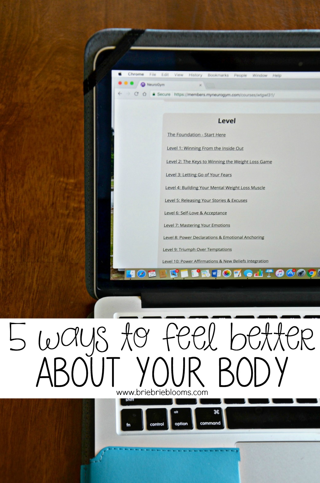If you saw my weight loss journal or even glanced at my personal photos over the past 10 years you would immediately recognize my fluctuating weight. Gaining and losing 10 pounds happens seasonally for me and I’ve recognized the need to do more for myself than diet and exercise. My strong personality makes me very competitive and losing weight is not something I particularly struggle with. My challenges come after I’ve lost that 10 pounds again. Why do I continuously move back to my old habits when I promised I wouldn’t after losing the same weight time and time again? NeuroGym is helping me work through those underlying issues and understand how to change my mindset by thinking about weight loss differently. While on this journey, 5 ways to feel better about your body, will help you stay focused on your current progress instead of only waiting for results.