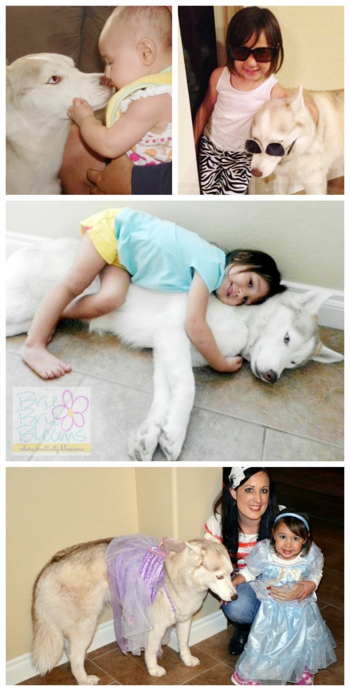 From the first week we brought our daughter home, Sophie has been very protective of her. They share a very close bond and are inseparable. Sophie and my daughter play together all day. They dress up like princesses, read together, and pretend to go shopping. Sophie sleeps with my daughter during most naps and bedtime. Greeting Sophie is the first thing my daughter does each time we come home from school or errands. My daughter and our Siberian Husky were destined to be buddies.