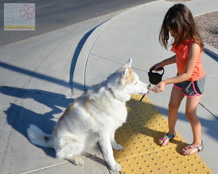 We have a long way to go before my daughter can hold the leash during an entire walk with Sophie but will continue building our confidence training with small pieces of Nudges dog treats. The resealable packages keep treats fresh and make it easy for me to pull out a few jerky cuts at a time for positive reinforcement dog training.