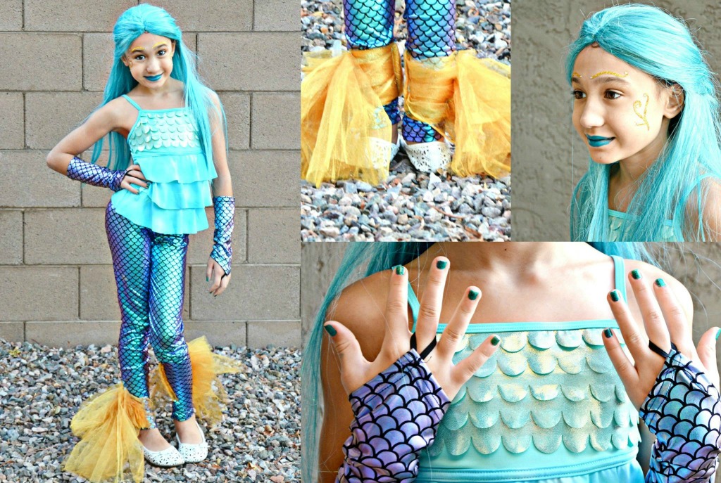 This year my oldest daughter dressed in a DIY Mermaid Costume to trick or treat while her little sister wore a macaroni penguin costume we had made years ago and then passed down because she’s currently the perfect size for big sister’s recycled costumes.