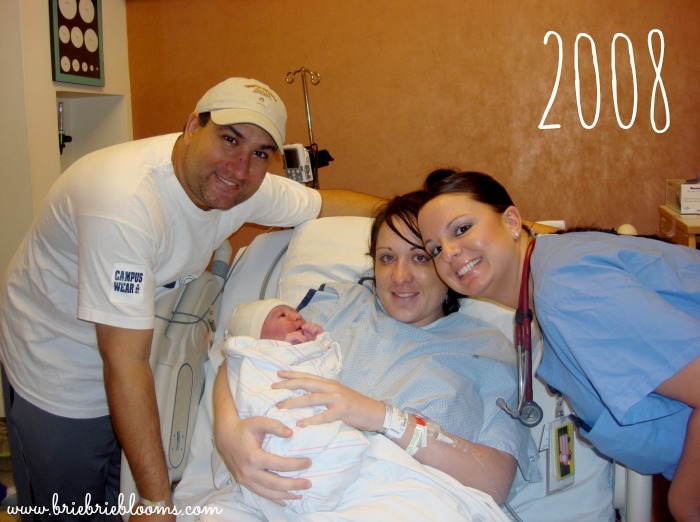 my husband, our first daughter, me, and our nurse Stacey (2008)