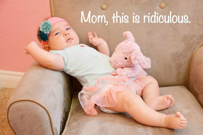 Having a nice camera and a cute baby doesn’t mean you are going to be able to take perfect pictures of your baby at home. Each month I take a photo of my daughter in the same room with the same camera and lens, with the same lighting, and the same pink stuffed piggie. And every single month, as hard as I try to make them consistent, that photo looks different.