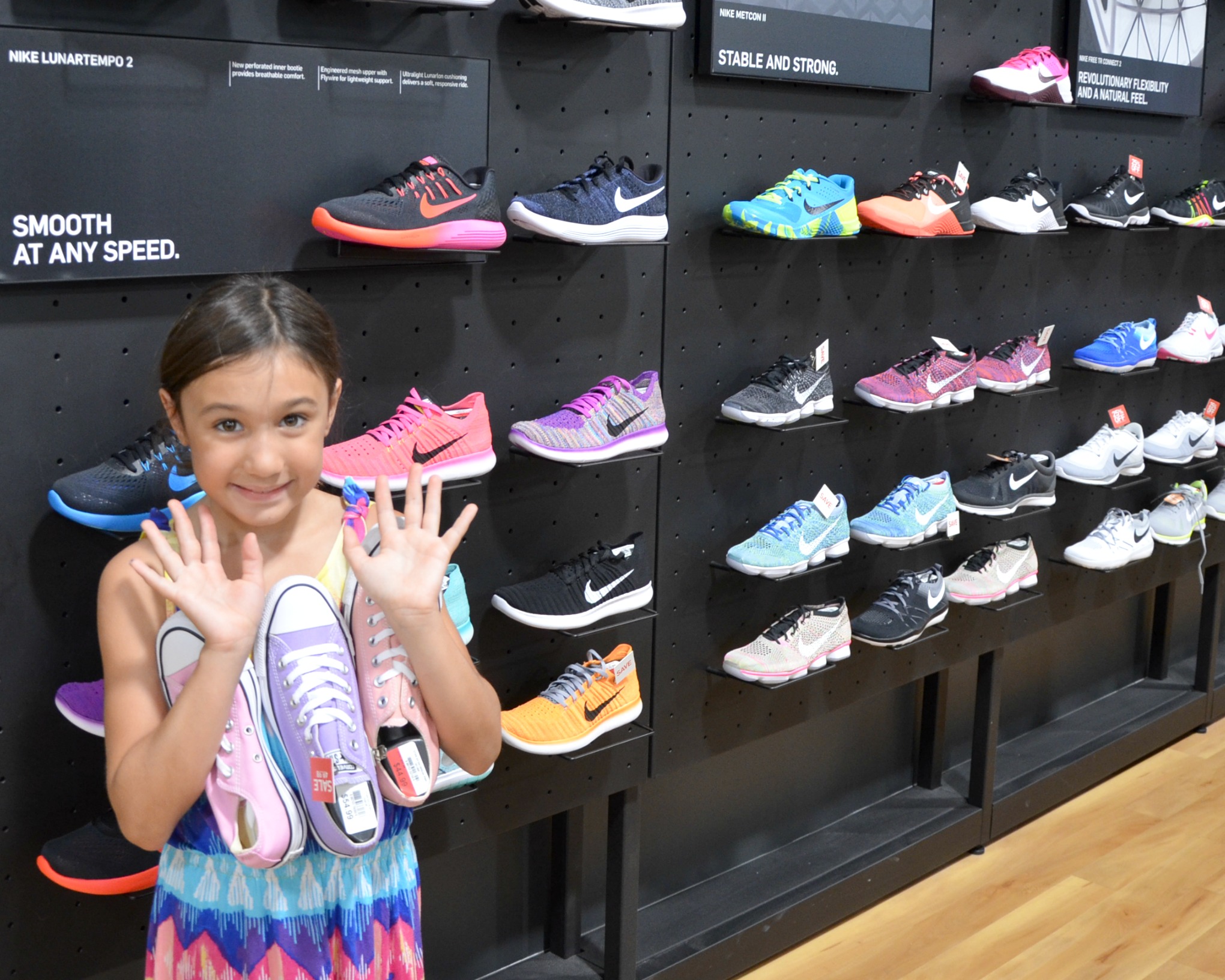 Our first stop was the shoe section. Knowing my daughter had a very specific vision for her new back to school shoes, I let her explore the department and pick out her favorites to try on. In my experience, it’s a pointless argument to try to talk your child out of a selection because sometimes once they’re tried on, they find a different shoe they love anyway.
