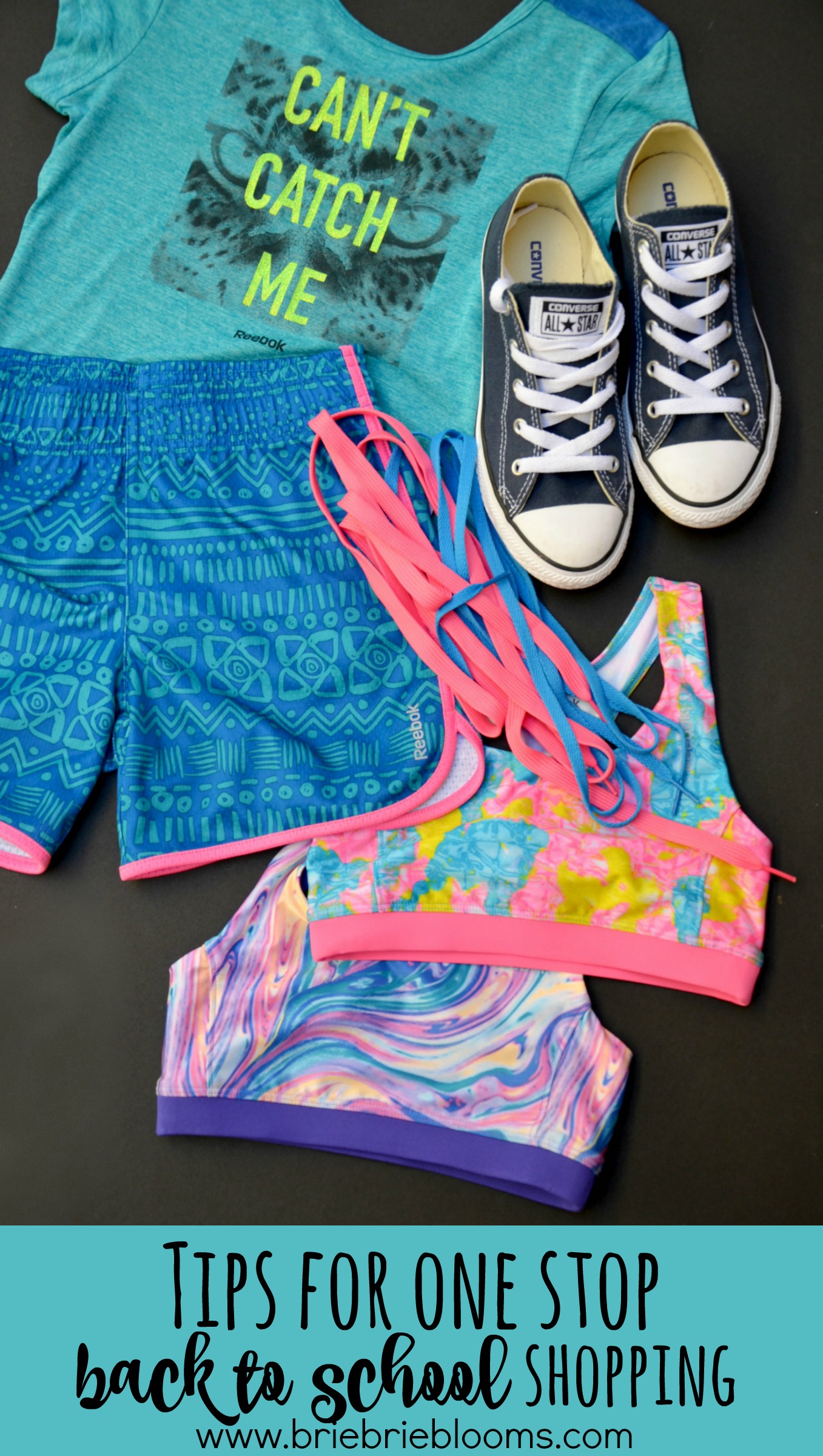 We made a shopping list of back to school supplies and stuck to it. Shirts, shorts, shoes, sports bras (which I fully understand are not necessary for a seven year old!), backpack, lunchbox and water bottle were all items we were able to purchase during our one stop back to school shopping experience.