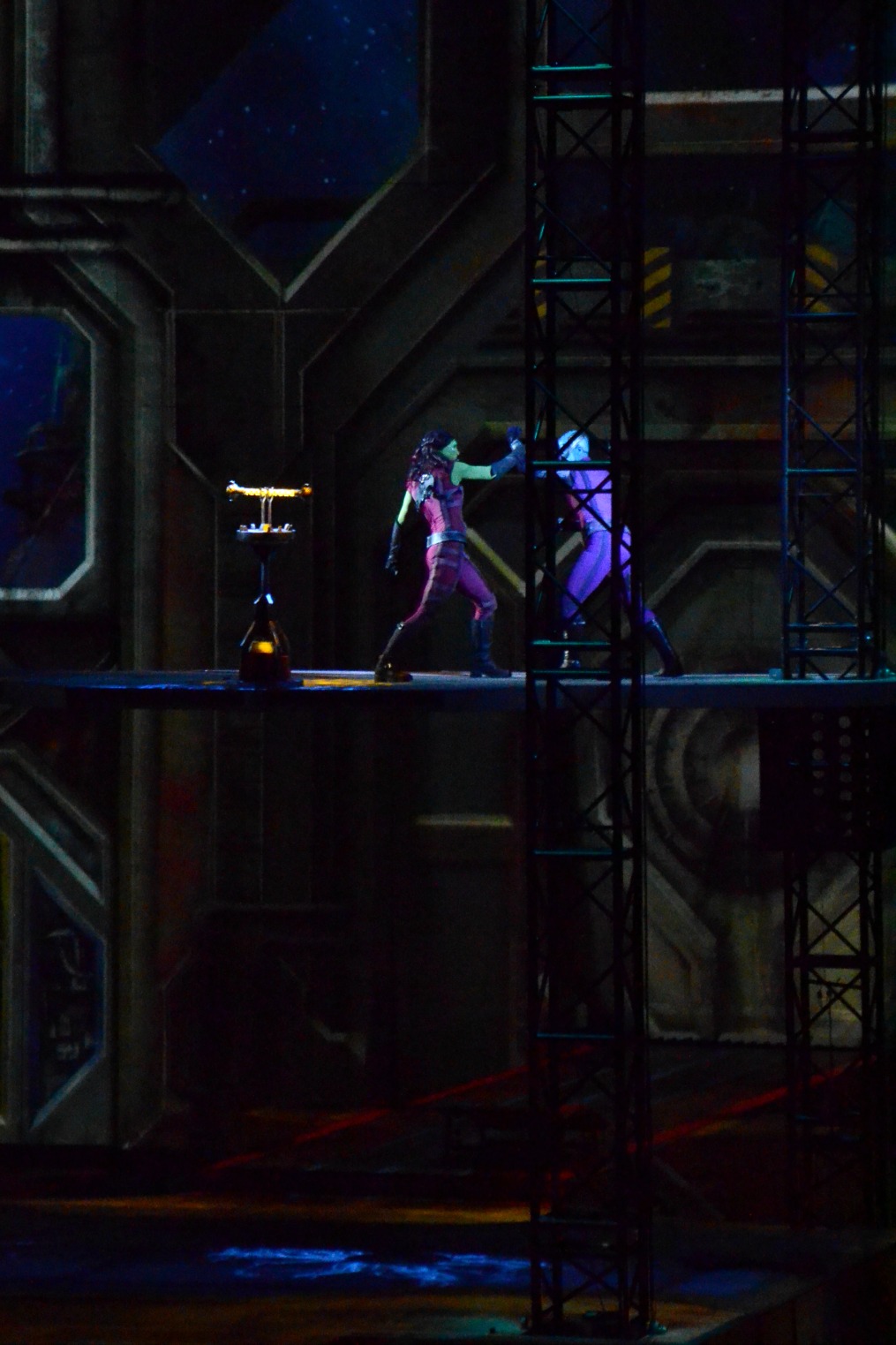 My daughters chatted with the gymnast who plays Gamora in the Marvel Universe LIVE! touring show. Little sister asked how she makes her face green and we learned about her makeup and hair routine. She is a stunning athlete and had very encouraging words for my oldest daughter.