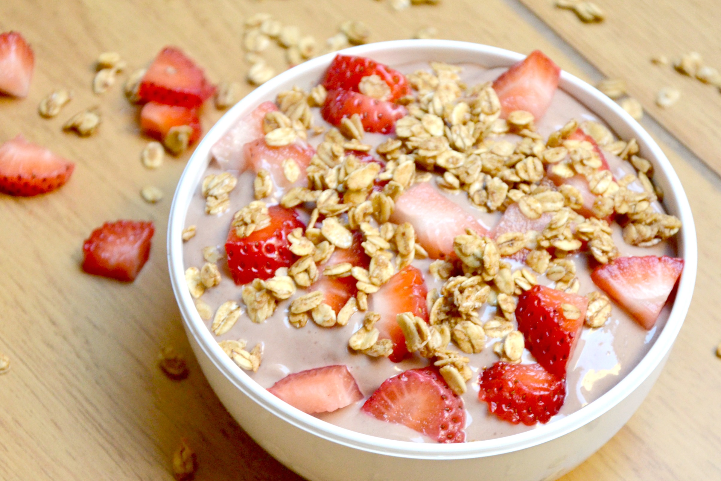 2) Top with strawberries and granola.
