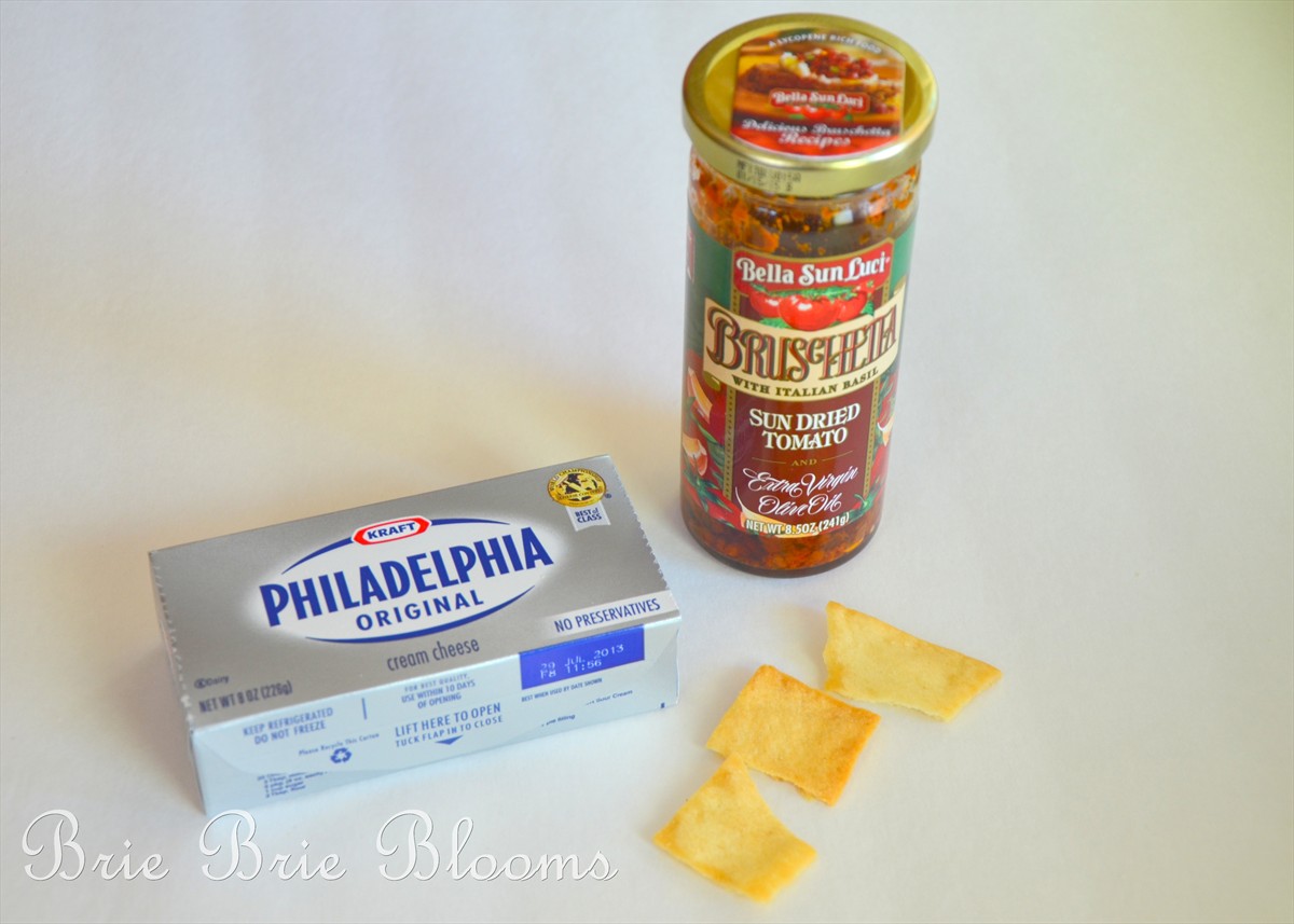 The dip is made from just two ingredients – half a jar of bruschetta and a package of cream cheese. The dip is excellent paired with pita chips or fresh veggies!