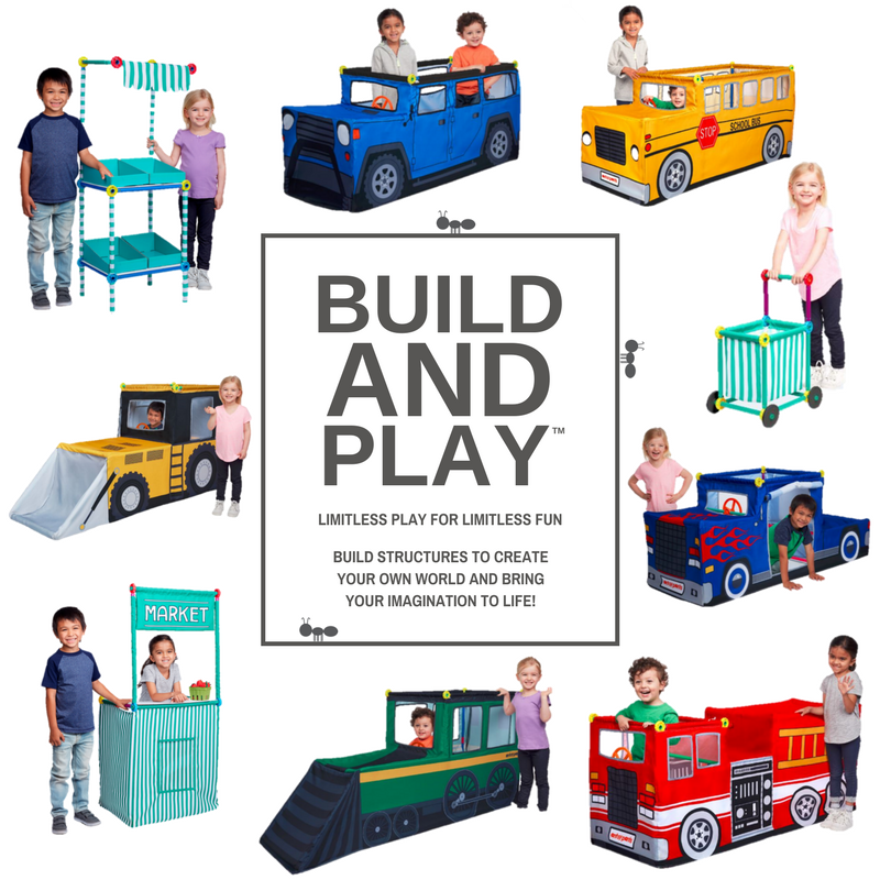 The brand new Build & Play™ Vehicle Kits include childhood favorites like buses, fire trucks and trains. The Build & Play™ Mini Market will feature market stands, a shopping cart and felt food.