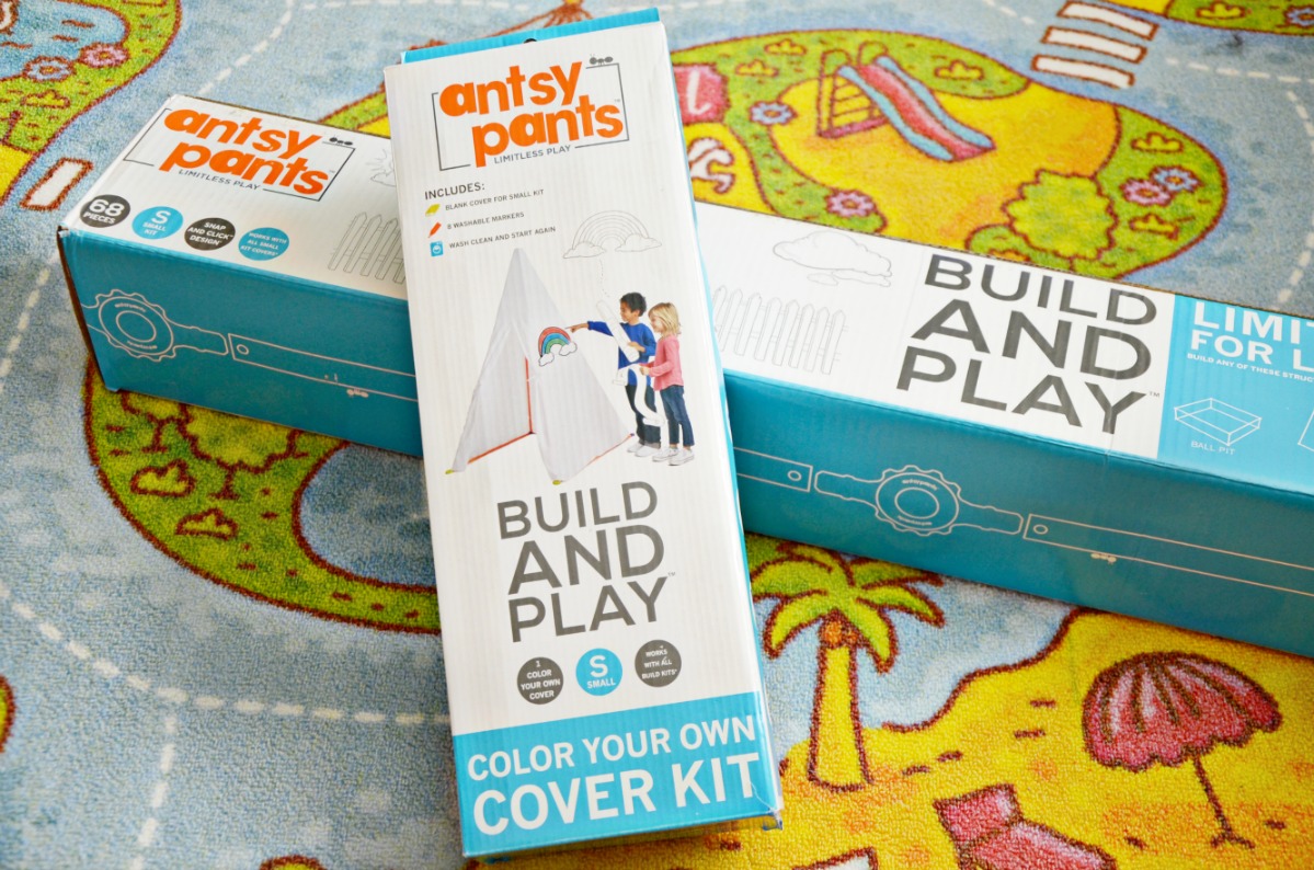 My daughters are six years apart and it takes an effort to find activities they will both love equally. With summer break already in full swing, we have blankets all over the playroom floor slowly extending to the entire house. Those blankets are also strung across furniture with displaced chairs and other props representing many abandoned complex forts. Raise your hand if you’re with me. The fort building madness is tearing apart our home but luckily we just received a big box from Antsy Pants. Both our daughters, age two and eight, love building forts together so the complimentary kids playhouse kits arrived at just the right time. Antsy Pants kids playhouse kits are exclusively available at Target and provide endless opportunities for creating, imagining and building together.