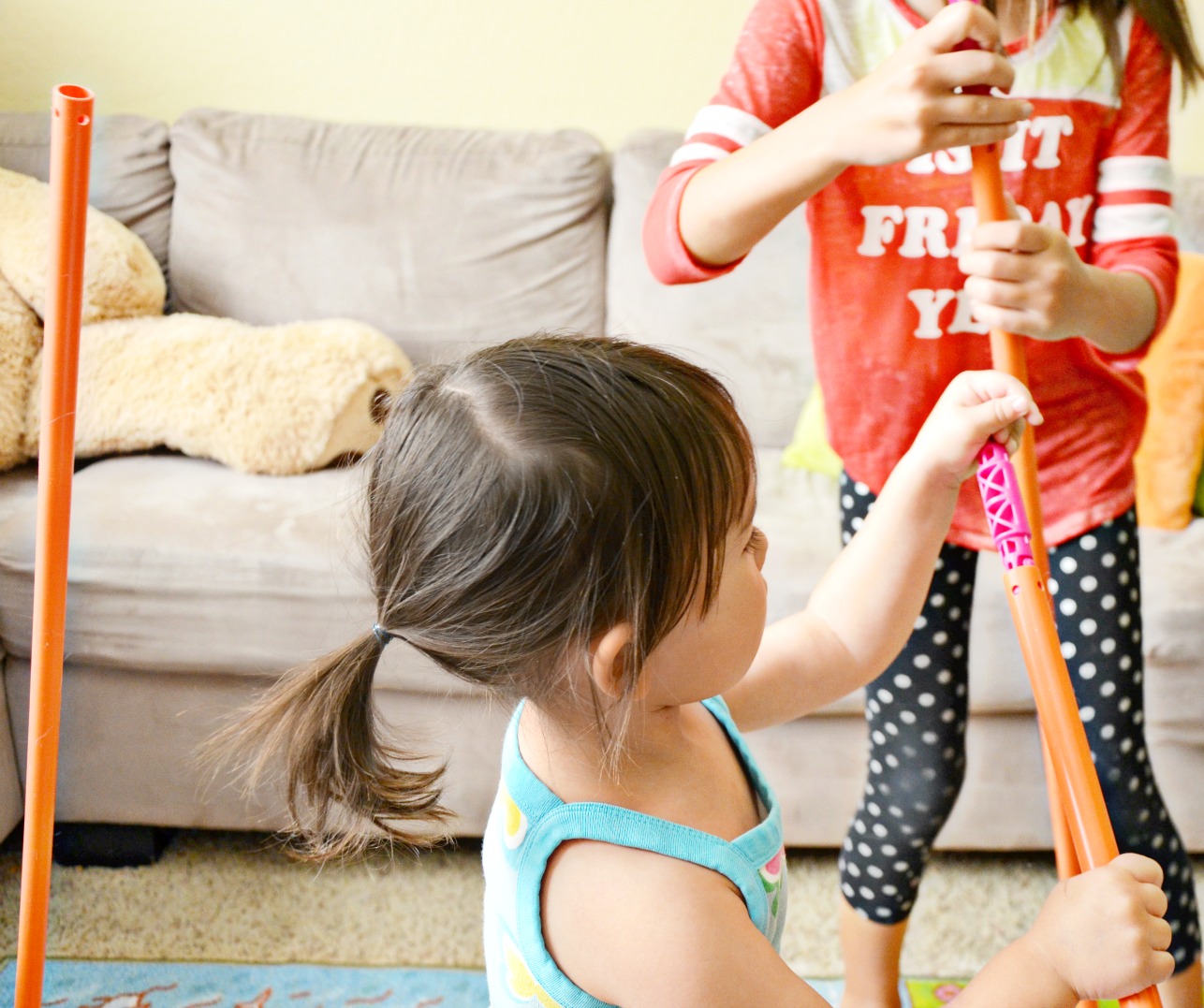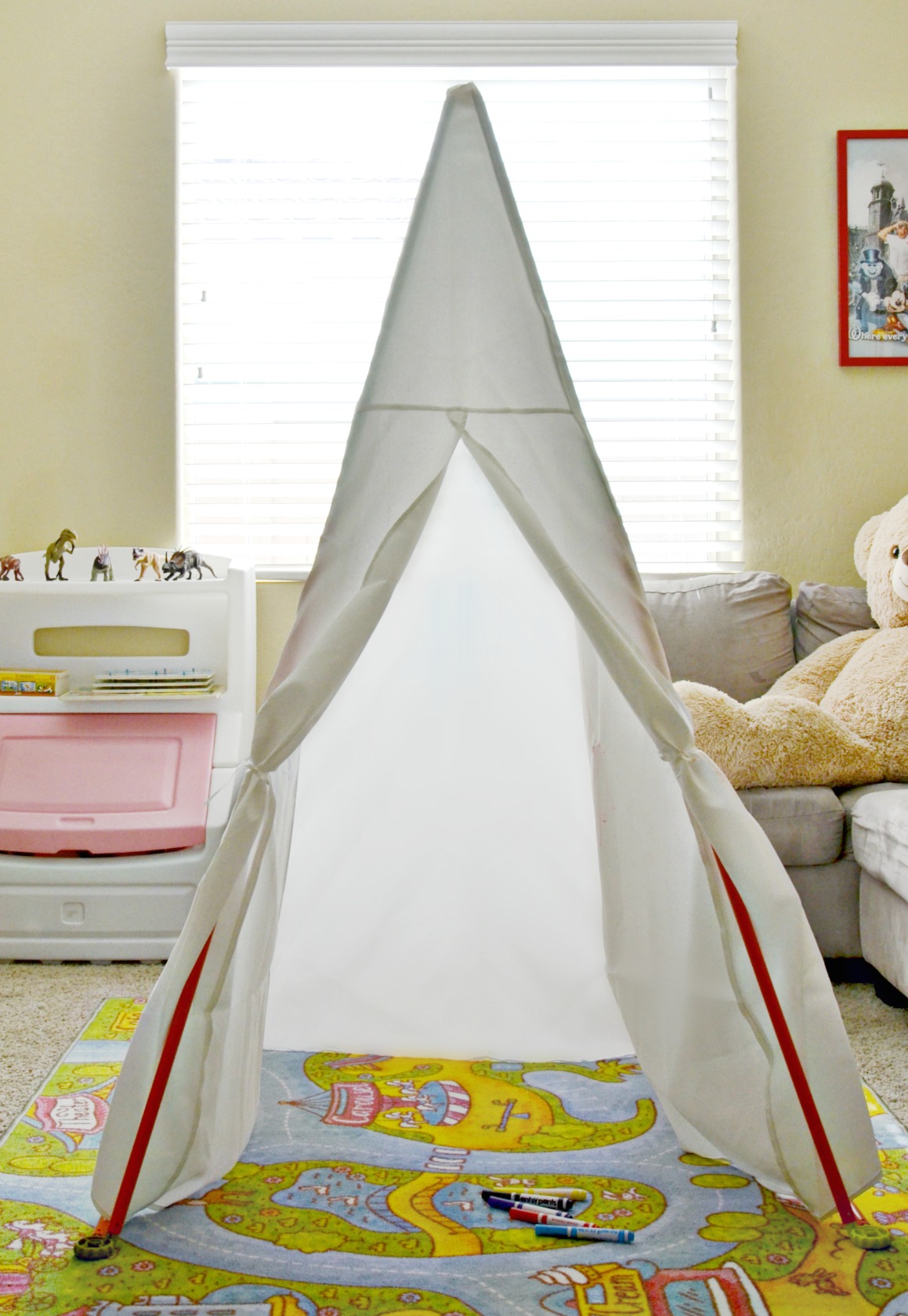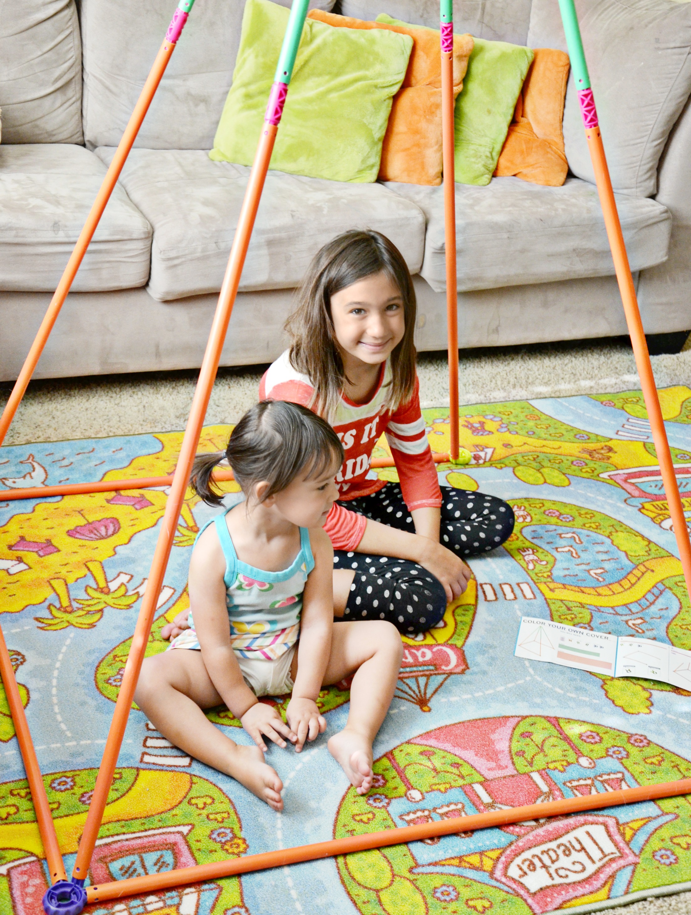 There are several different size kits with instructions to build specific kids playhouses but because each kit comes with poles and connectors, creativity is limitless. We also received the Small Creative Cover Kit, a washable canvas cover to turn your child’s creations into reality. The cover fit perfectly over the teepee my daughters made together in their playroom.