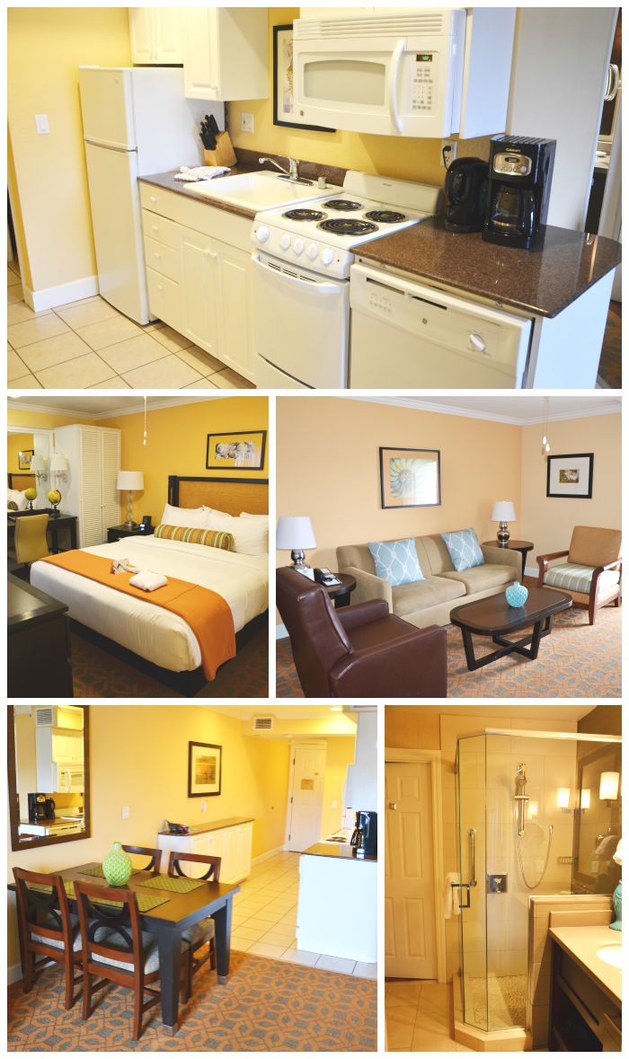 The Carlsbad Inn has several different accommodation styles: traditional guest rooms, suites, and beach resort condominiums. We have stayed in all three throughout the past but our preferred stay is in the condos. The full kitchen with stove, refrigerator, and dish washer makes it absolutely ideal for a weeklong family stay. Our last summer vacation included a lot of baby supplies. We needed adequate space for all the floor toys. We also wanted a comfortable space for our Ingenuity washable play yard (affliate link) and our six year old daughter to lounge while we weren’t out playing in the sun. The dishwasher helped washing many bottles throughout the week because as I’m sure parents know, washing bottles in a hotel sink is not fun (or easy!). The big bathroom has a very nice shower but with a baby, we got creative to figure out how to bath a baby in a room without a tub.