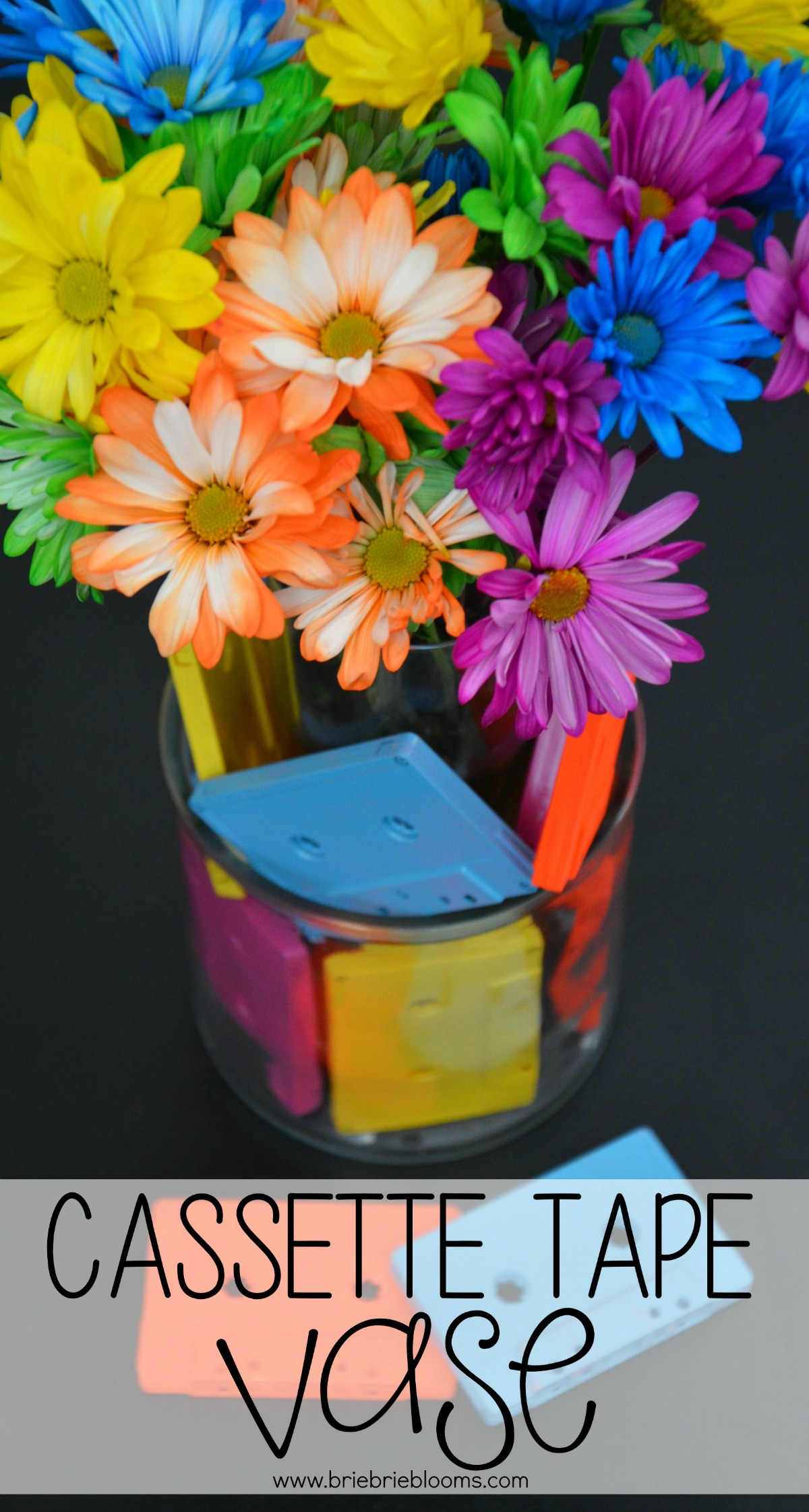 I love the way the cassettes look painted! Cheerful and colorful. Those daisies are so pretty, too! Perfect for the vase.