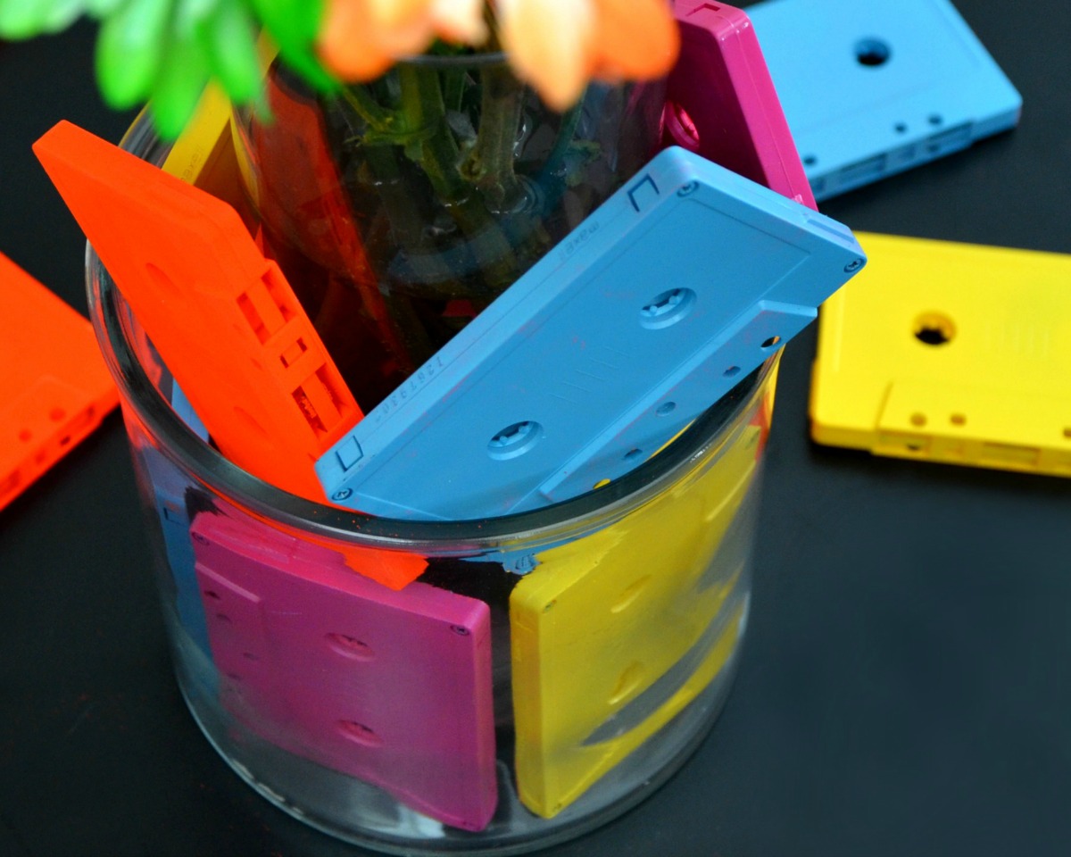 I love this vase. I love, love, love it. I am so nostalgic for the 80s and 90s and the ideas of bringing back cassettes as a decor item is just genius!