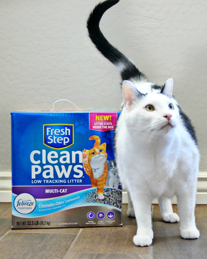When Toby hears the garage door open he runs downstairs to greet whoever is coming home. He was happy to see me walk through the door with Fresh Step® Clean Paws™ this week. The low dust formula has increased odor-fighting protection with the power of Febreze™ freshness for multi-cat households.