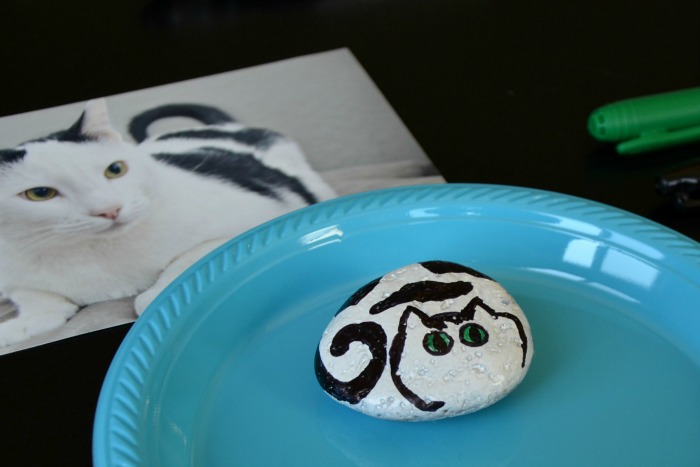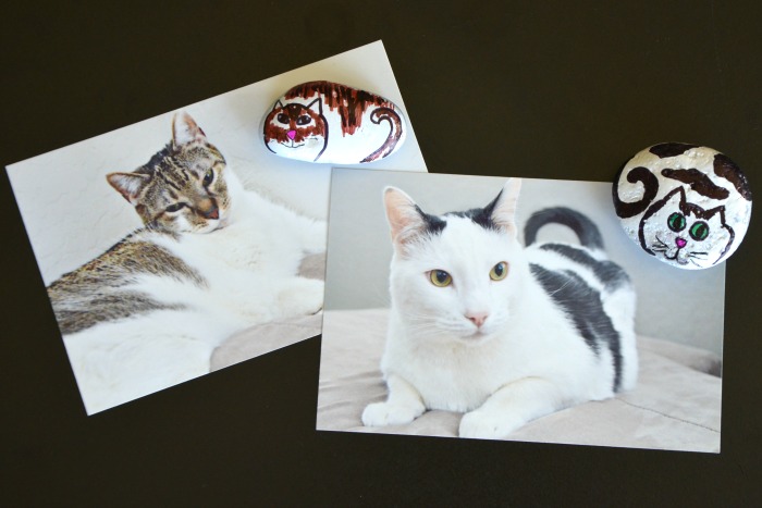 Use the cat rock magnets to share photos of your cats on the refrigerator, in a locker or on a magnetic board in your office. Both my daughters helped with this easy craft and will each have a set in their bedrooms on magnetic boards to remind them of our favorite pets.