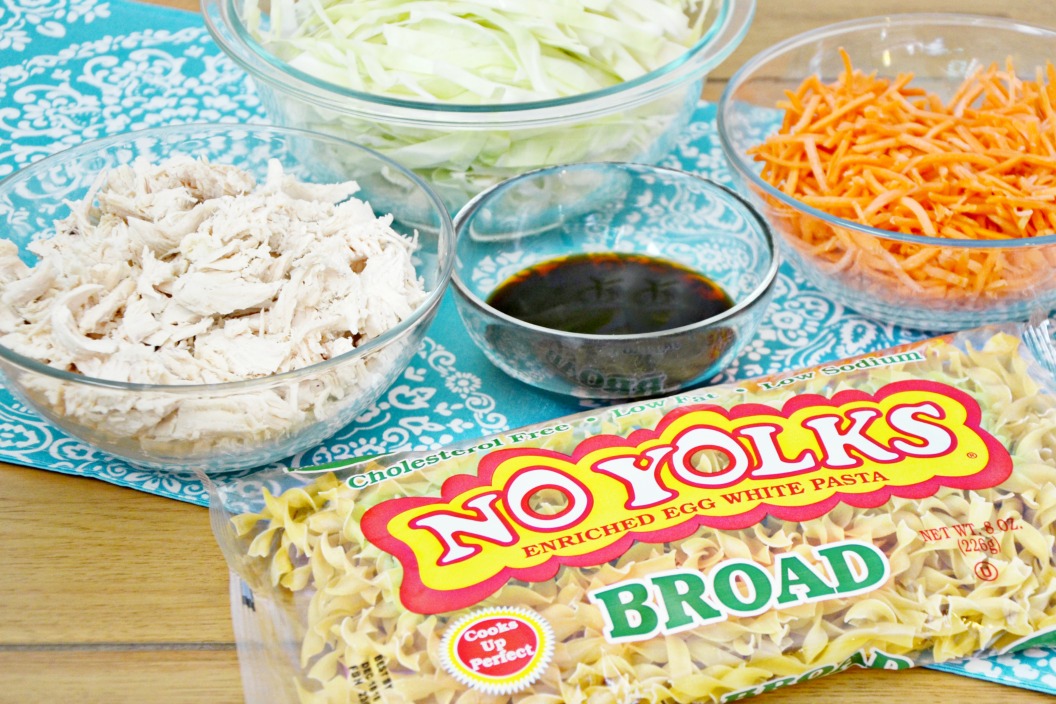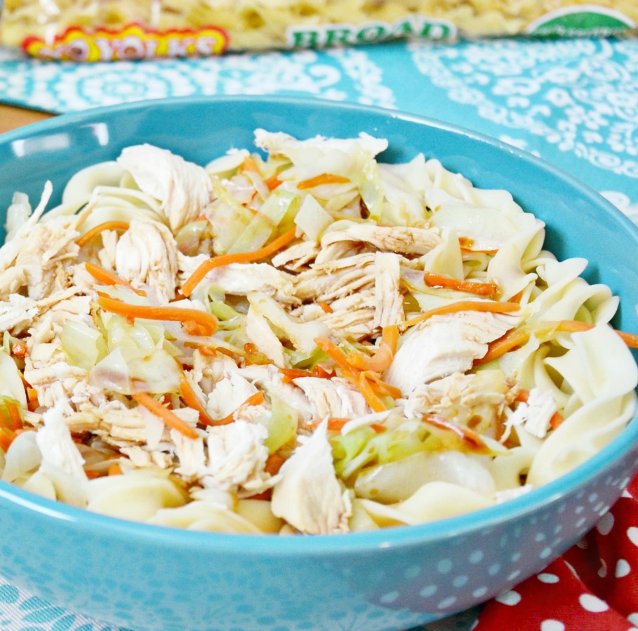 Make this easy chicken cabbage noodle bowl recipe with No Yolks egg white noodles, the healthy alternative to egg noodles.