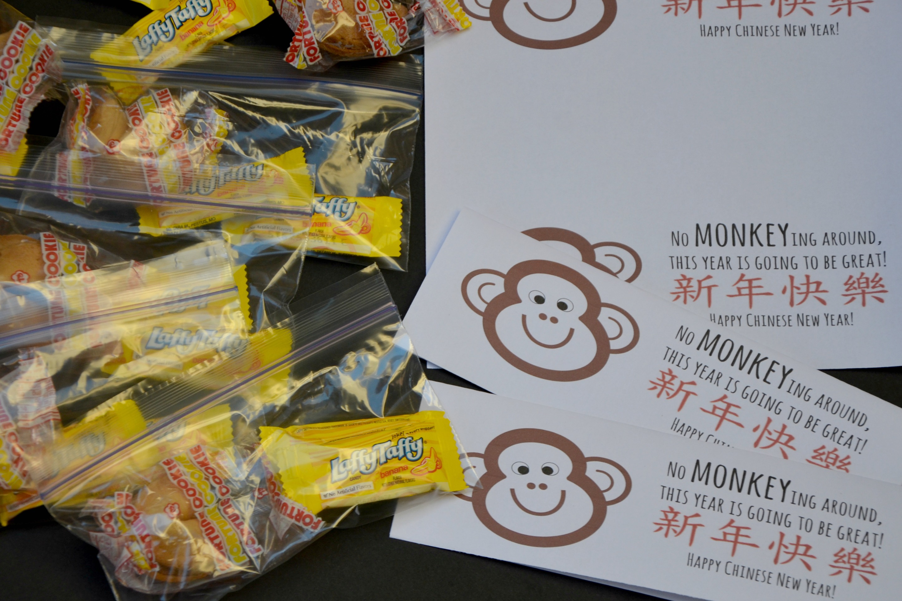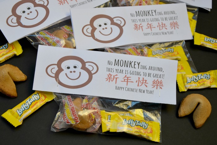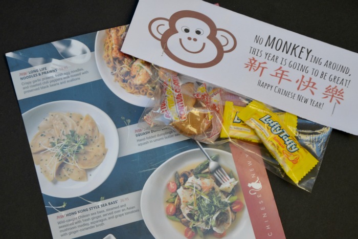 Earlier this week I was invited to help celebrate Chinese New Year with P.F. Chang’s Chinese New Year menu. The Chinese holiday is significant to my family because my seven year old daughter has been in a Mandarin Immersion elementary program for the past two years. She spends half of her classroom days with a Mandarin speaking teacher using very little English in the classroom. Prior to kindergarten, she did not speak the language or write the characters. In just two short years she can count and write to 100, knows many greetings, and can identify and read hundreds of characters. We enjoyed celebrating the Chinese New Year at P.F. Chang’s and my daughter is very excited to celebrate again with classroom treats for her friends Monday. The Year of the Monkey is a great reason to to use my Chinese New Year Printable Treat Bag Tag to share banana Laffy Taffy® and fortune cookies with friends.
