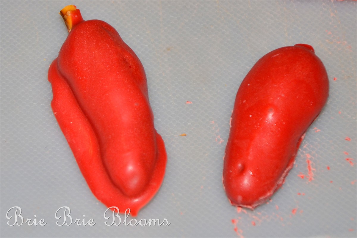 I also trimmed the excess red chocolate from the peppers with a small knife.