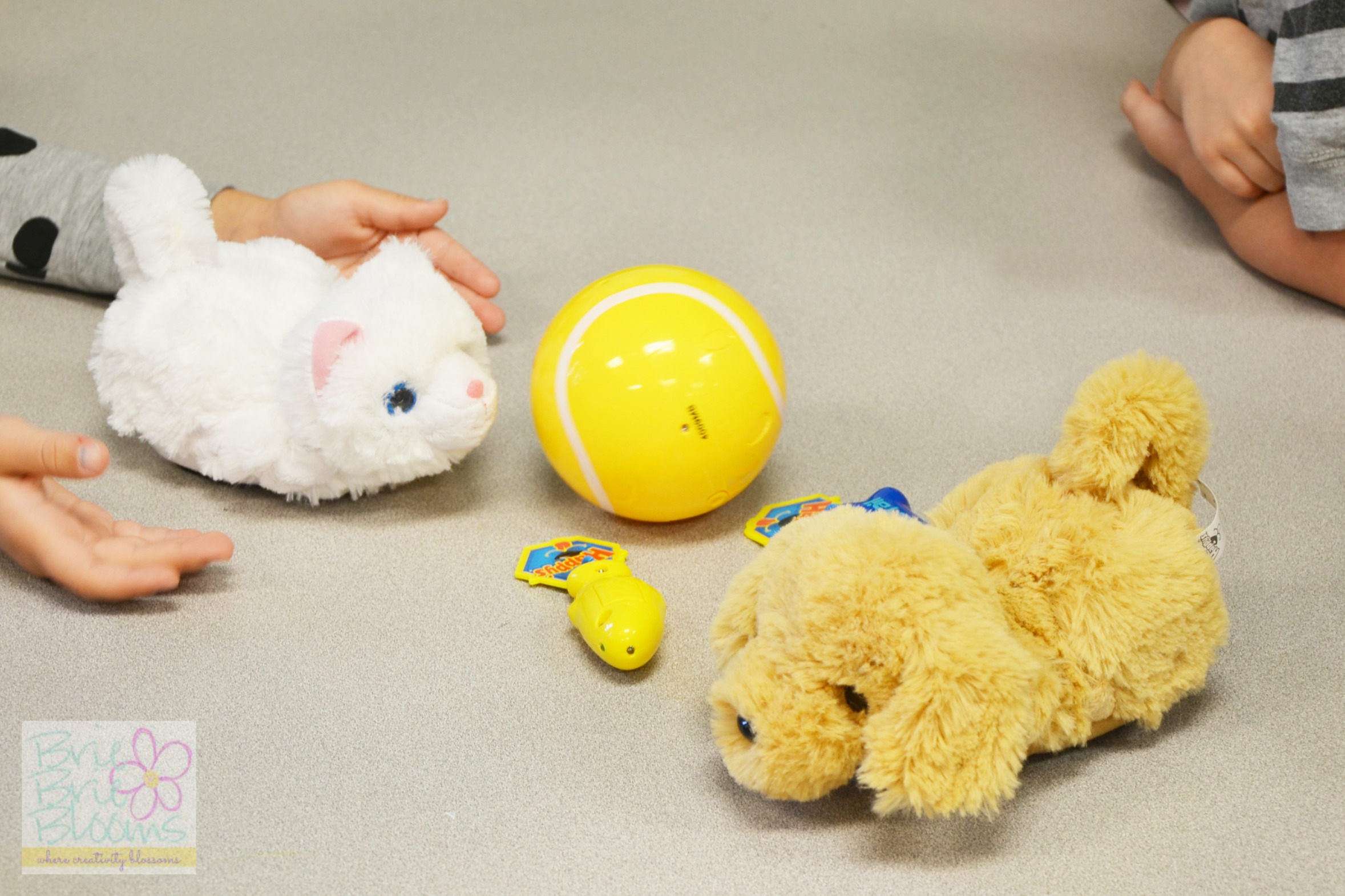 I introduced The Happy’s with out batteries to teach a few rules in the classroom before free choice play time. We discussed handling the new interactive pets responsibly and giving them plenty of love in our classroom.