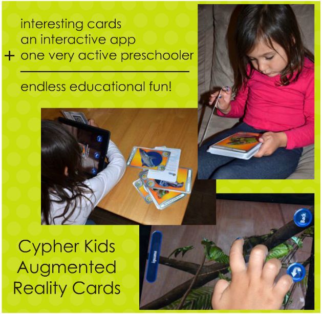 There is certainly no doubt that our children have great abilities and interests in new technology. My daughter is extremely interested in anything and everything I show her on our computer, laptops, or smart phones. She constantly asks to use my phone for apps and definitely prefers it over television. While I’m excited about her enthusiasm for new technology, sometimes I get overwhelmed by the amount of apps out there. I want to make sure we are using the technology as an educational resource and not just something to keep her fingers busy while she is sitting in long car rides. I am so excited to have recently discovered the Cypher Kids Augmented Reality Cards. The learning cards interact with Apple devices (iPhone, iPad, etc.) and provide so much more than just entertainment.