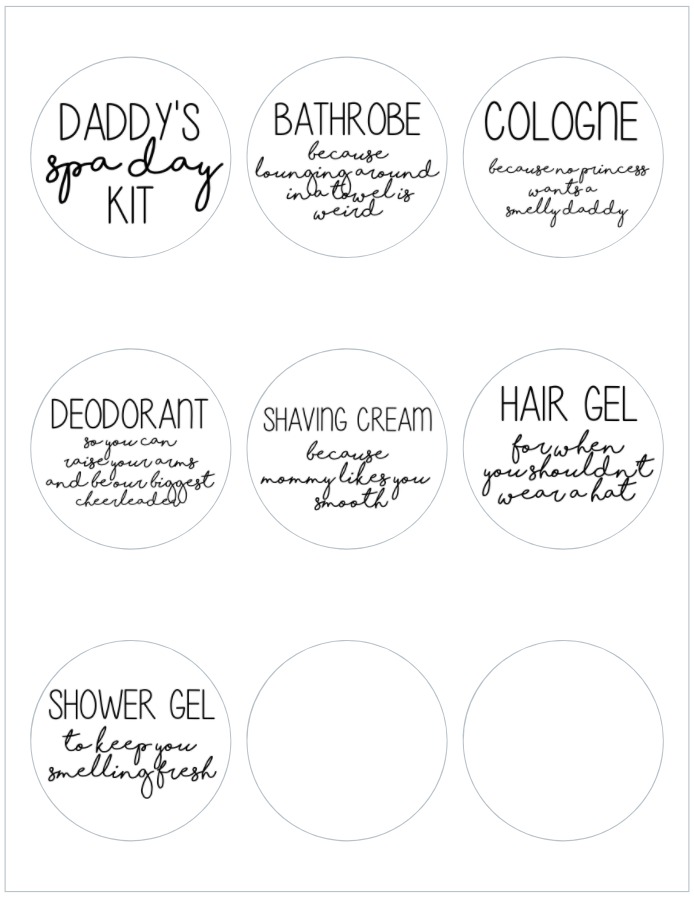- daddy’s spa day kit printable labels