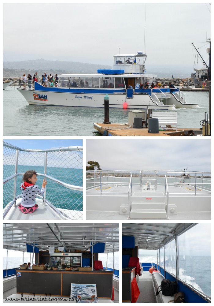 Dana Wharf has a fleet of different whale watching vessels. The Ocean Adventures catamaran is the newest vessel and can hold up to 49 passengers. The boat has seating inside and a large viewing deck. The roomy boat features a snack bar and restrooms. My daughter found a great seat and couldn’t wait to start looking for whales.