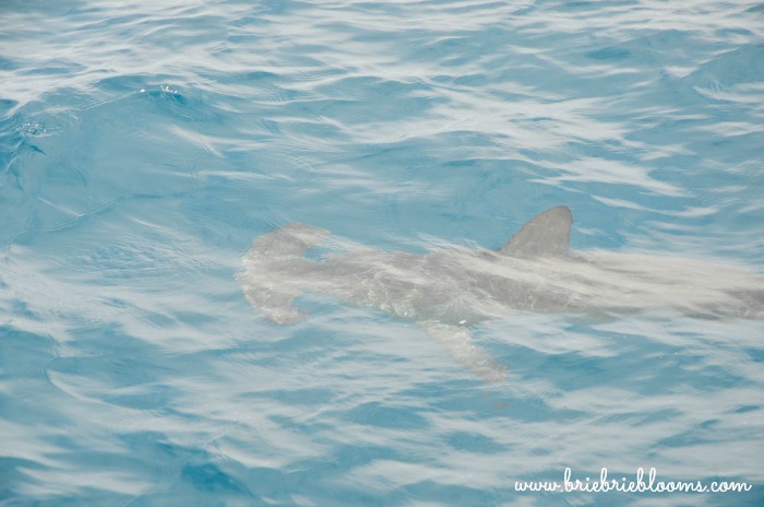 Then we were surprised by a Hammerhead shark. The shark swam right next to the boat and was very close to the surface. At an estimated 10 feet (using the boat as a reference), it was incredible to see the shark!