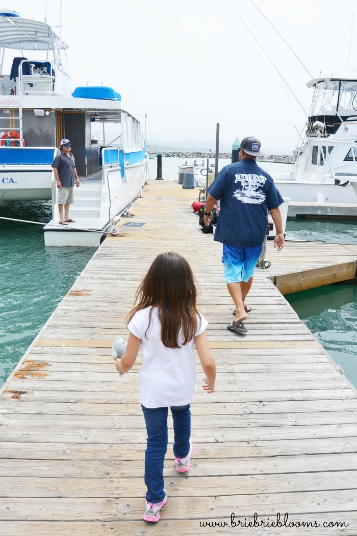We checked in for our whale watching tour and walked along the dock before our whale watching tour began. Earlier in the year we interviewed a Dana Wharf captain to learn tips for whale watching with children. My daughter pointed out she saw the captain as we walked along the dock. It was great getting to see him again while we were waiting for our tour. Dana Wharf is a family owned business with captains committed to teaching children about ocean conservation while leading family friendly whale watching tours and fishing excursions.