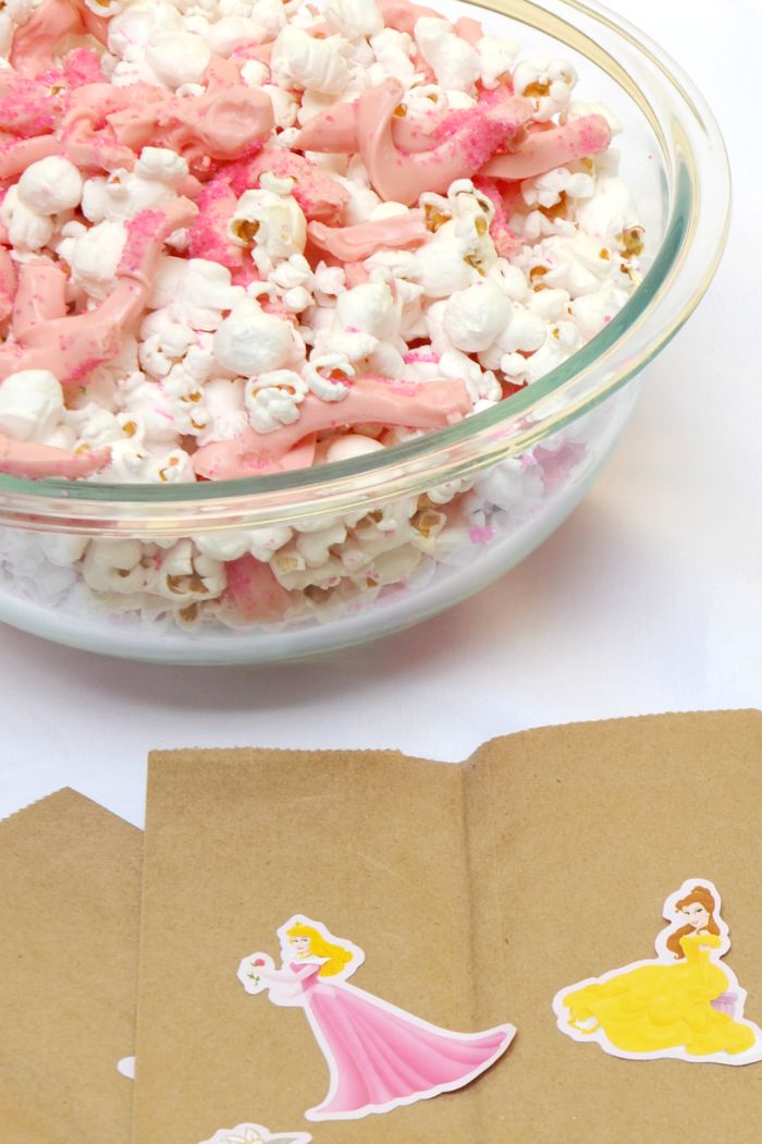 For the Team Heroes popcorn: melt pink chocolate in microwaveable bowl at 30 second increments, stirring in between, until fully melted. Pour over popcorn. Top with hot pink sprinkles.