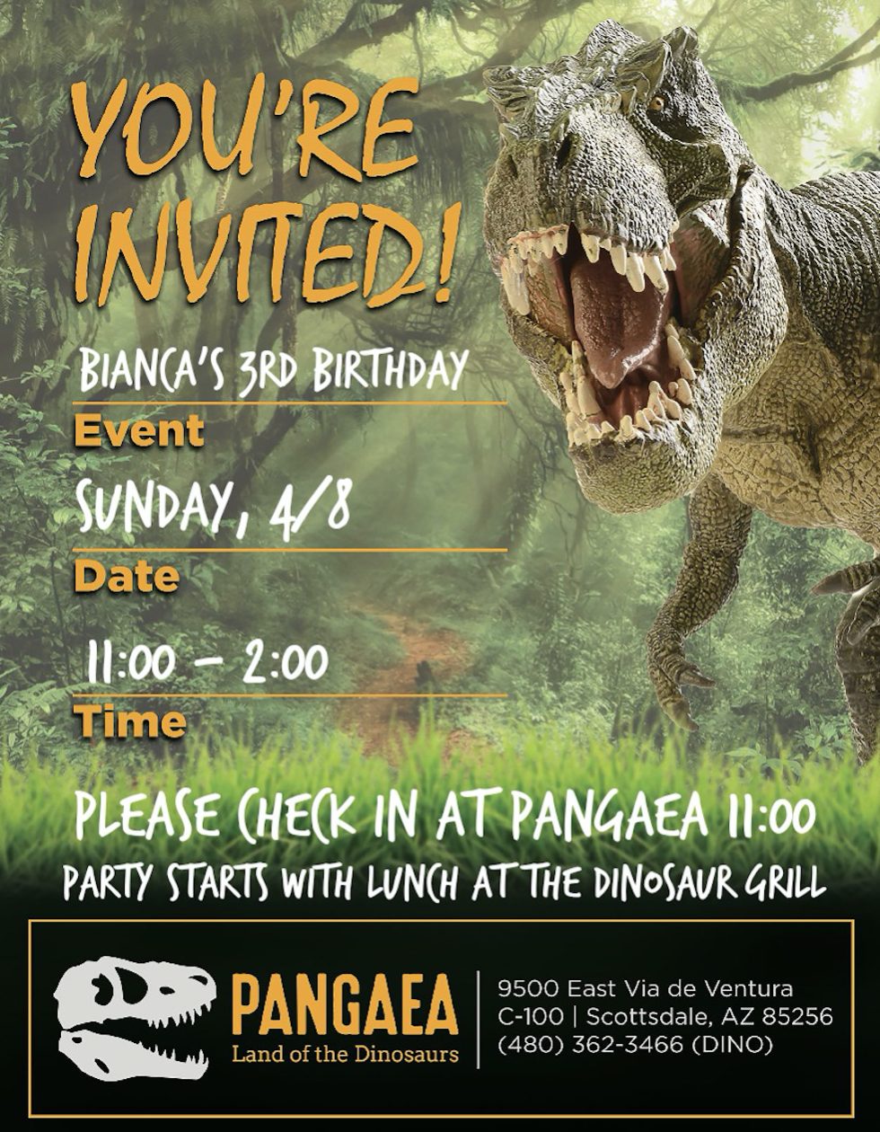 If you’re having a home or park party, consider science activities like sand fossil digs, dino treasure hunts or DIY crafts. Hosting your party at a dinosaur themed venue like Pangaea Land of the Dinosaurs is my favorite way to party because they handle everything from start to finish.