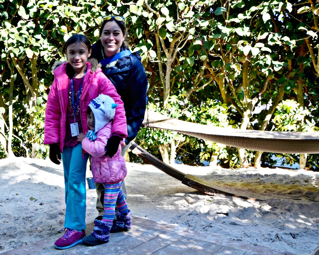 The all-inclusive resort provides a hot breakfast, hot lunch and snacks throughout the day. A fabulous kids menu and snacks the entire family enjoys added to our wonderful experience. Unlimited beverages include Coke products, water, hot chocolate, coffee and alcohol for guests 21+. We definitely appreciated our private cabana attendant’s delivery of warm cookies and hot chocolate during one of our colder moments out of the water. We took a break for lunch before visiting the Explorer’s Aviary. The warm balanced meal was delicious and because it is buffet style, everyone in the family selected their favorite meals.