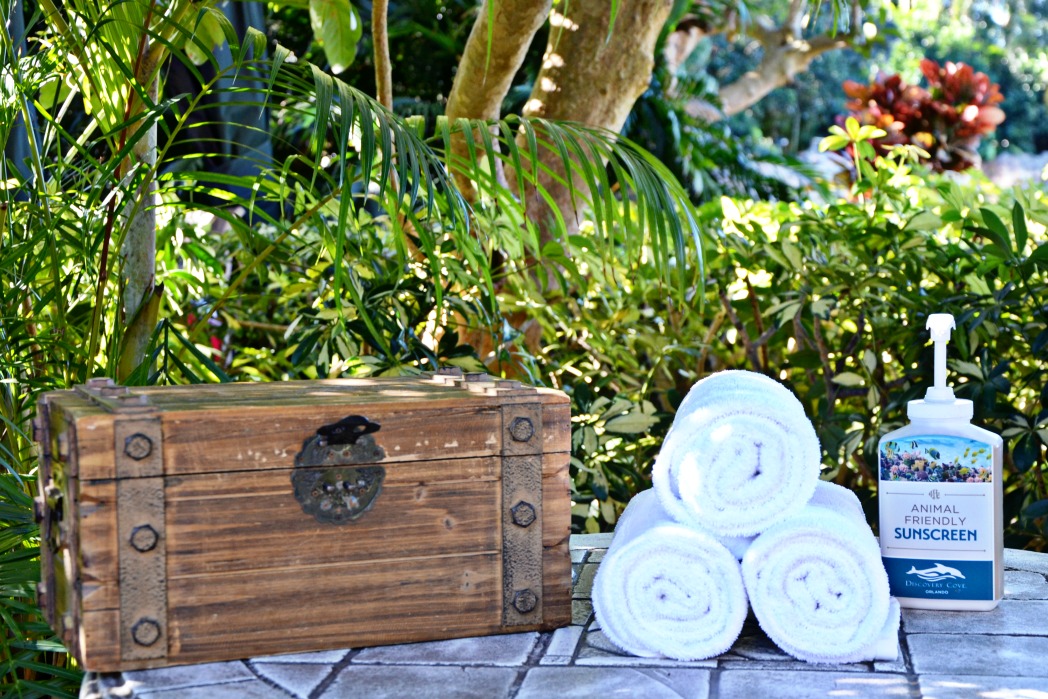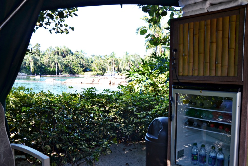 Our private cabana had a wonderful view of Dolphin Lagoon with secluded dining area, hammock and fully stocked refrigerator. The safe with key was an excellent alternative to using a locker and provided a secure place for us to leave our personal belongings during our planned activities. Towels and sunscreen and an attendant to assist with all our needs made it easy to enjoy the day and forget about the abnormally cool weather.