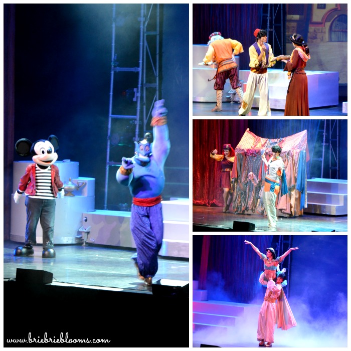 Next the Genie joined the show. My daughter and her friend were so excited because they expected Jasmine to make an appearance next. I enjoyed the reminder of Robin Williams and all the Genie’s dancing. Just as expected Aladdin and Jasmine brought the show to life with their story and performance together.