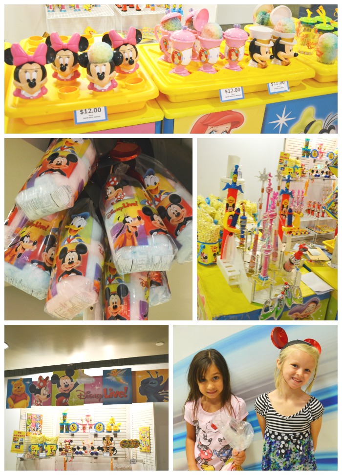 The mermaids came next and treated us to a fun performance of “Put a Ring on it”. We had seen the mermaids perform at Disney on Ice Rockin’ Ever After earlier this year and I was excited to see them dance again. Next we had a brief intermission to take a bathroom break and visit the concession. The fun Disney merchandise, snow cones, and popcorn were appealing but my daughter and her friend had their hearts set on the colorful cotton candy.