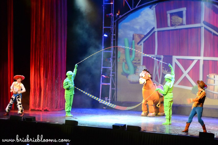 Toy Story characters showed us that horses can jump rope. Bullseye joined in the fun after Jesse and Woody showed us their jump roping skills.