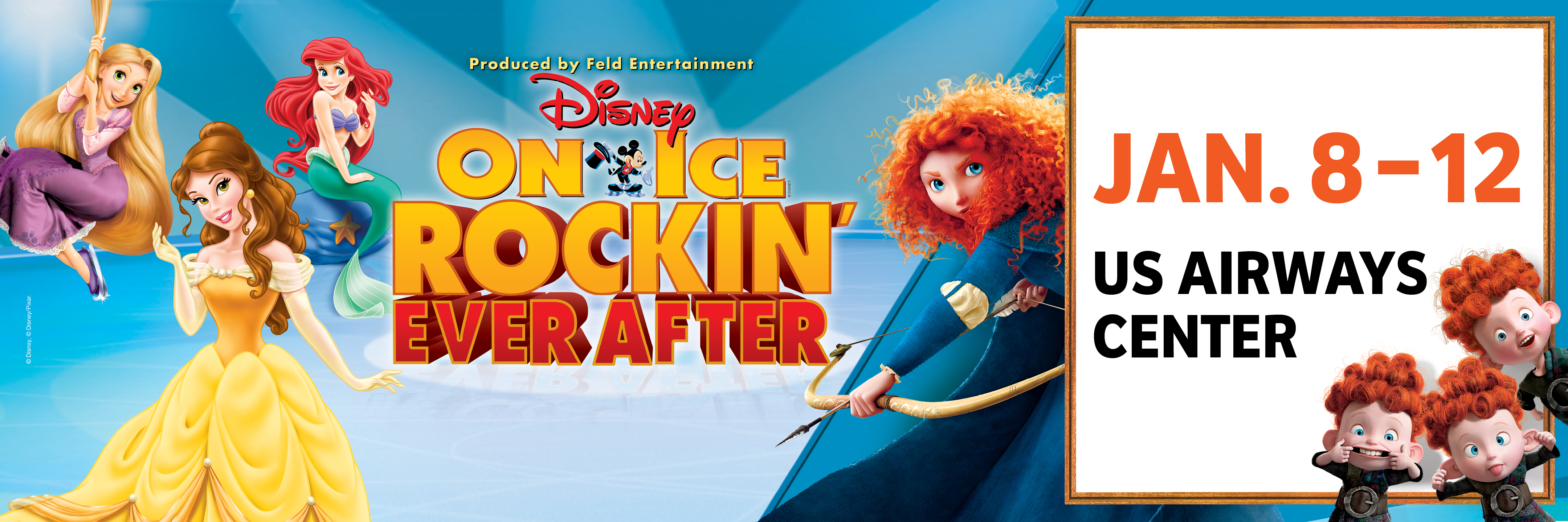 Get ready to rock out with some of the most magical idols of all in a musical showcase that features the hottest tunes and talent from across the kingdom in Disney On Ice presents Rockin’ Ever After! Jam to a Scottish jig as a group of royal contenders from the latest Disney•Pixar film, BRAVE, competes to win the heart of adventurous, sharp-shooting Merida, making her on-ice debut! Experience a show-stopping performance as Sebastian breaks out of his shell for one night only to make waves with Ariel. A chorus of harmless hooligans from Tangled unleashes musical mayhem when they get a visit from the sassy and spirited Rapunzel and her charming ally Flynn. And, get your feet moving as the Beast and his castle’s enchanted entourage take center stage in a spectacular show for Belle. It will be a rockin’ remix of royalty when Disney On Ice brings this superstar line-up to your hometown!