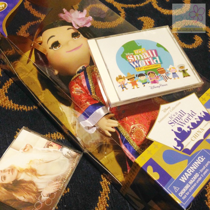Returning to our room in the Disneyland Hotel was exciting because a special gift had been left for us. We received the Animators’ Collection It’s a Small World China doll, It’s a Small World 50th Anniversay CD, and the Sabrina Carpenter CD. The doll was very special because my daughter is going to be entering a Mandarin Immersion Kindergarten program later this year. She loved getting to hear the doll sing in Chinese.
