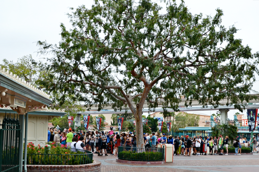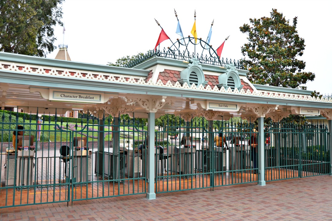 The entrance gates to Disneyland have long lines well before the park opens. Because you have the first reservation for character dining at the Plaza Inn, you will be lining up before the gates are open. Do not line up in the general admission lines. Instead, use the gate labeled “Character Breakfast” directly to the left of the main gates.