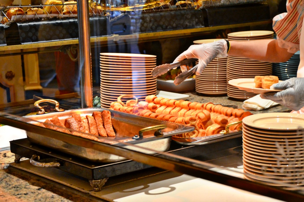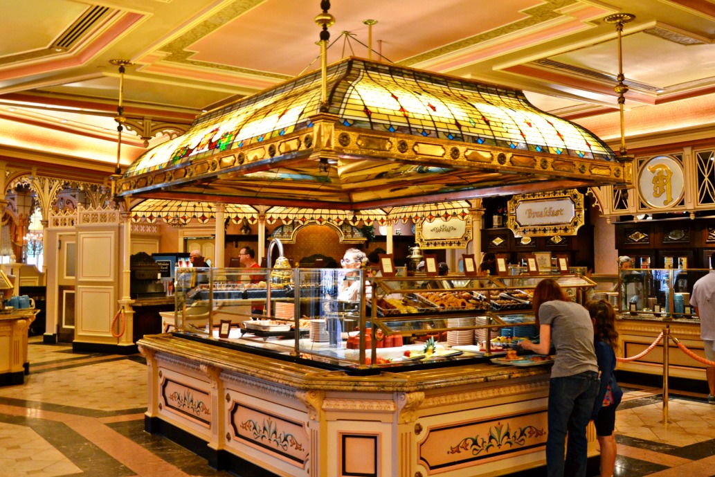 The breakfast buffet has many choices so definitely arrive hungry. French toast, Mickey waffles, pastries, all American options (scrambled eggs, sausage, potatoes, bacon, biscuits & gravy) and an omelet bar provide something for everyone.