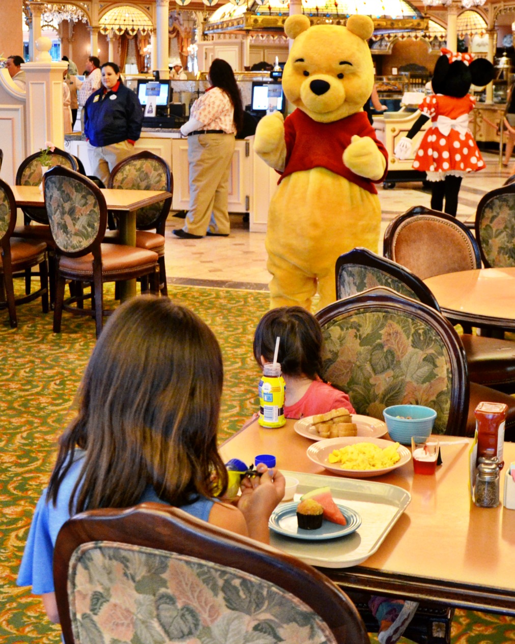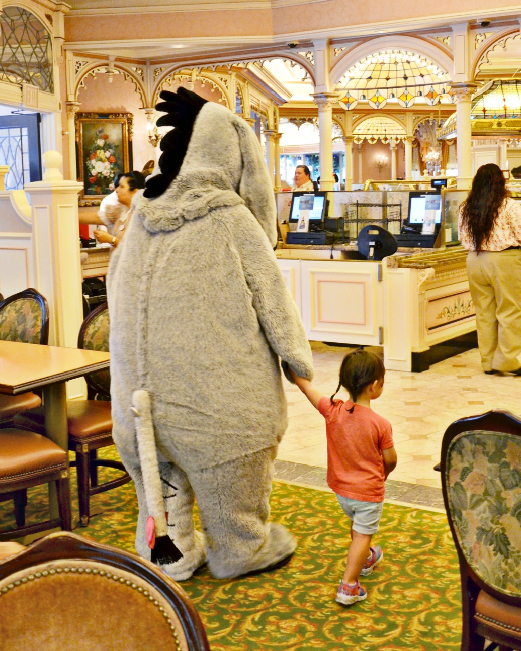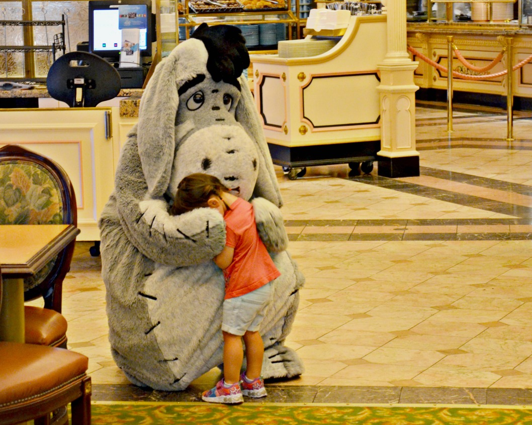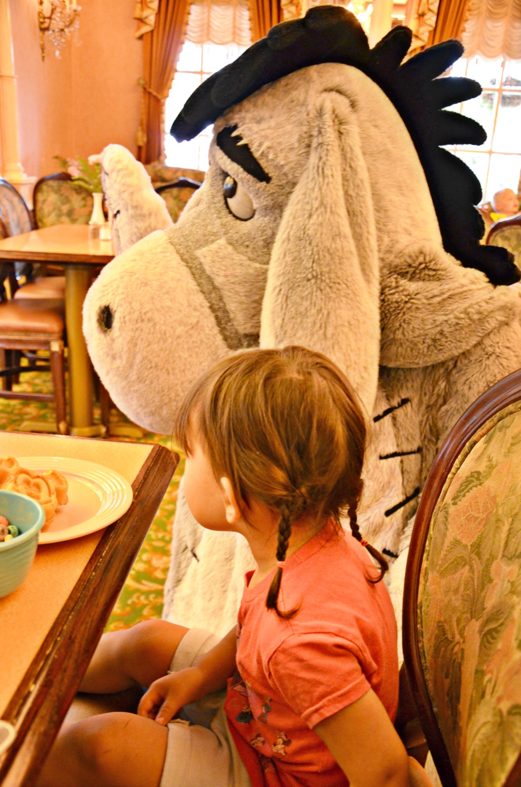 The earliest reservation gave us plenty of extra time with the characters. Little sister was spoiled with so many encounters and had the entire restaurant dining room to run from favorite to favorite. She was so excited when she spotted Eeyore across the room. They hugged, made a breakfast plate together and even sat for a minute sharing Mickey waffles.