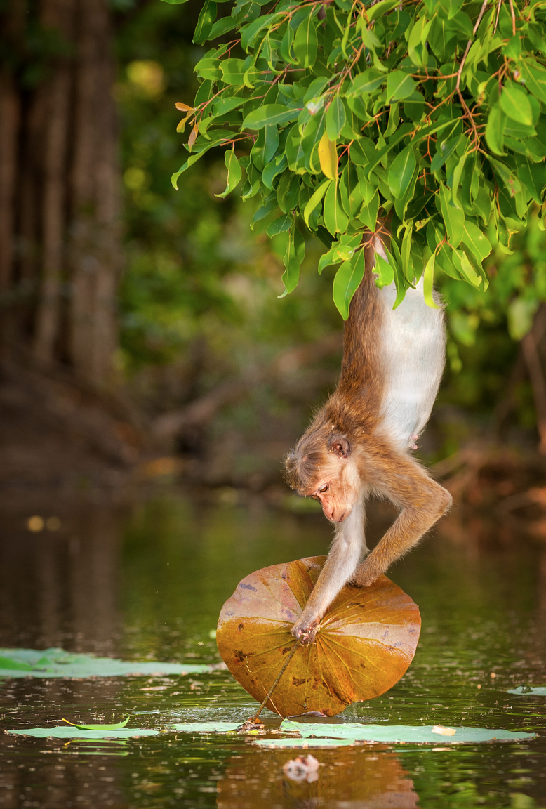 Monkeys at the bottom like Maya weren’t permitted to eat plump ripe fruit from the kingdom’s tree. Instead she had to sit below and gather scraps to be nourished enough for nursing baby Kip. When the fruit stopped falling she had to get creative and sometimes ventured to the pond for lily pad pods, also where dangerous predators like monitor lizards seek their prey.