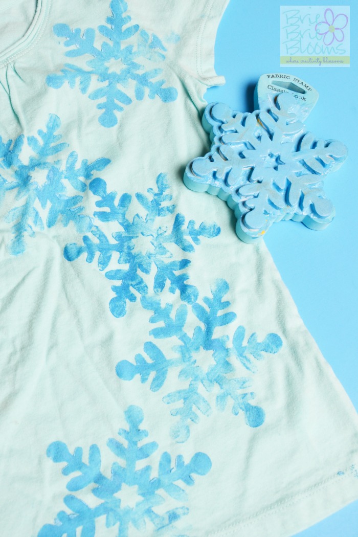 Gently press the painted snowflake stamp on the front of the DIY FROZEN shirt.