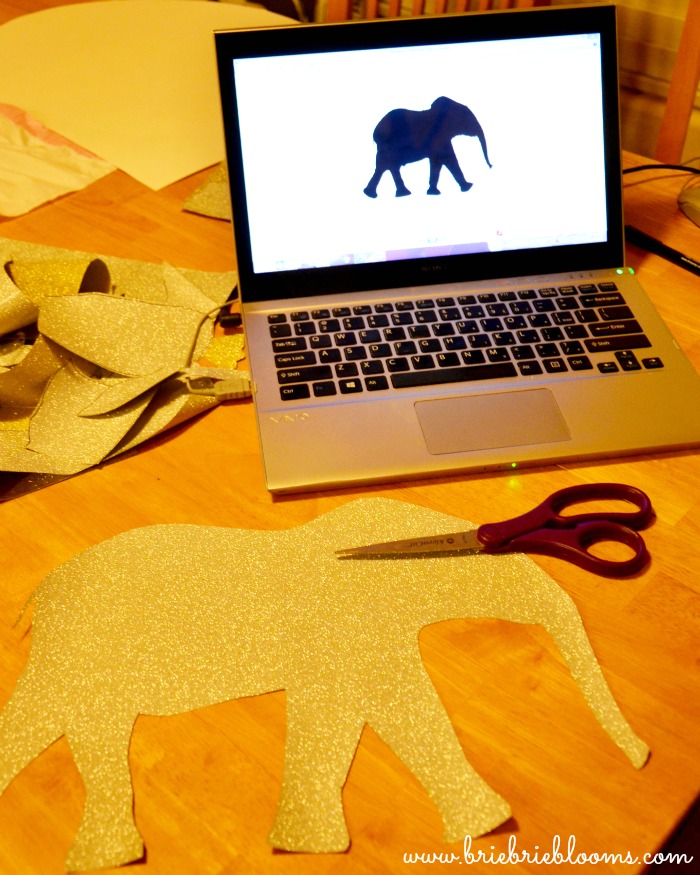 With a new baby arriving soon, I’ve been working on her nursery and finishing up my last projects. Her pink and gold nursery is the perfect place for a DIY glitter animal wall art collage. I transformed frames I already had at home into glittery safari animal silhouettes. The nursery itself is very glam and these framed animals softened the room to make it a fun wall for a new baby.