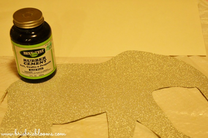 4) Use rubber cement glue to adhere the glitter animal silhouettes to the center of the poster board for each frame.