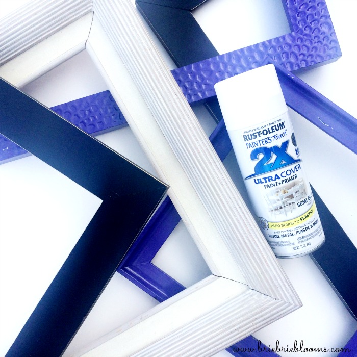 1) Remove glass and backing from frames. Use spray paint to fully cover all surfaces of frames.