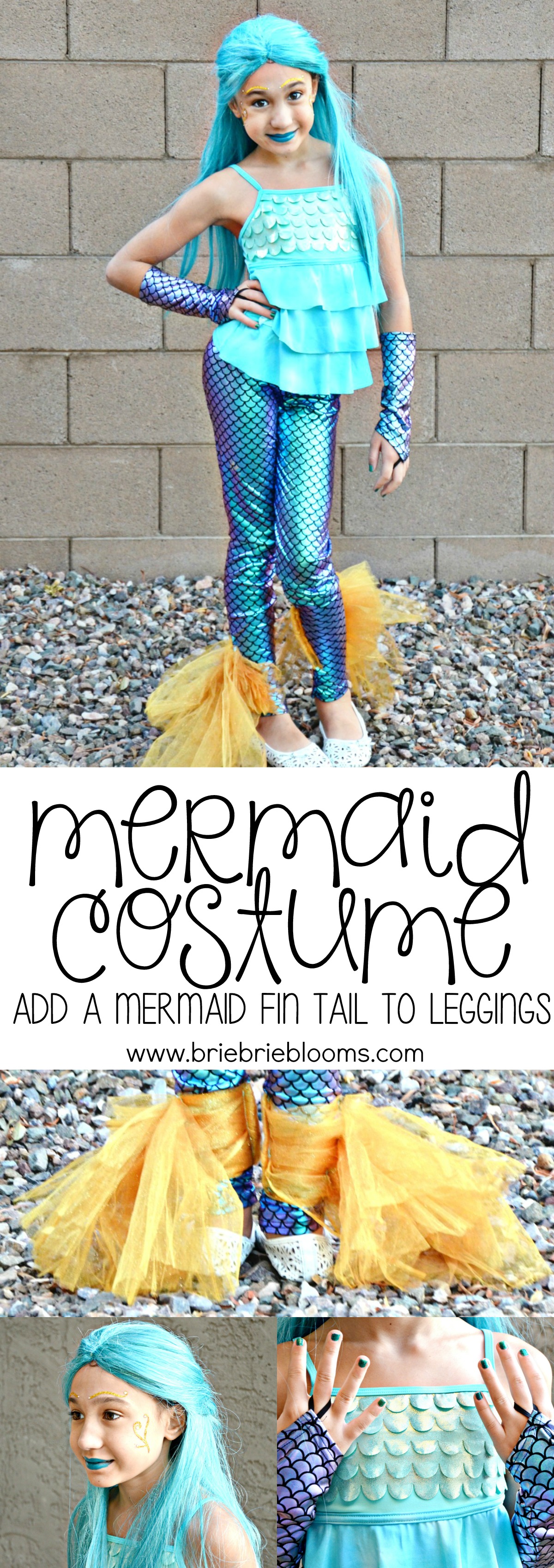 This happens every year in our home so I shouldn’t be surprised. I give my oldest daughter plenty of time to decide on a Halloween costume but most years we have several different costume ideas and reasons to make them. This year she made her annual SeaWorld Halloween Spooktacular costume then took a very long time to decide what she wanted to wear to a neighborhood party, classroom party and trick or treating. Her SeaWorld porcupine costume turned out adorable but she decided the day before our neighborhood party she wanted to dress up as a mermaid. With our house move, more DIY costumes simply weren’t in my time budget so I figured I would quickly run out to the Halloween costume store to pick up a mermaid costume while she was at school. That quick errand turned into a daylong unsuccessful search for a mermaid costume. Instead of a full mermaid costume, I ended up with mismatched pieces to put together the prettiest mermaid costume on our own. After watching a few tutorials on how to add a mermaid fin tail to leggings, I improvised and created an easy way to take your favorite metallic fish scale leggings from everyday wear to a mermaid costume complete with a tail.