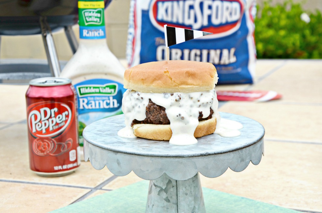 We had an unusually warm summer and I’ve been looking forward to this weekend for most of the last few months. Grillgating is back! I grew up with my dad being a huge Emmitt Smith fan so it’s pretty awesome that he’s sharing grill recipes and challenging you to share your photos and experiences too with #GrillGatingHero. Your photo could end up on the Grillgating website and (fingers crossed!) catch the eye of Emmitt himself. Kingsford® Charcoal and Dr Pepper® are both great additions to your entertaining plans but when paired together they create a recipe for a TOUCHDOWN. You know, the perfect kind of recipe to share at your next tailgating party now that we are finally back in football season! My Dr Pepper Ranch Burgers are exactly what our weekend needed and this recipe will surely be on repeat this fall at our house. Featuring hamburgers marinated in Dr Pepper then smothered in Hidden Valley® Ranch Dressing, you’re going to want to pick up everything you need at Walmart while out on your normal Grillgating grocery run. Let’s make this easy, I already made your shopping list for you: Kingsford® Charcoal, RITZ Crackers, Dr Pepper, Hidden Valley Ranch Dressing and Glad® Press’n Seal for leftovers if you’re lucky enough to have any.