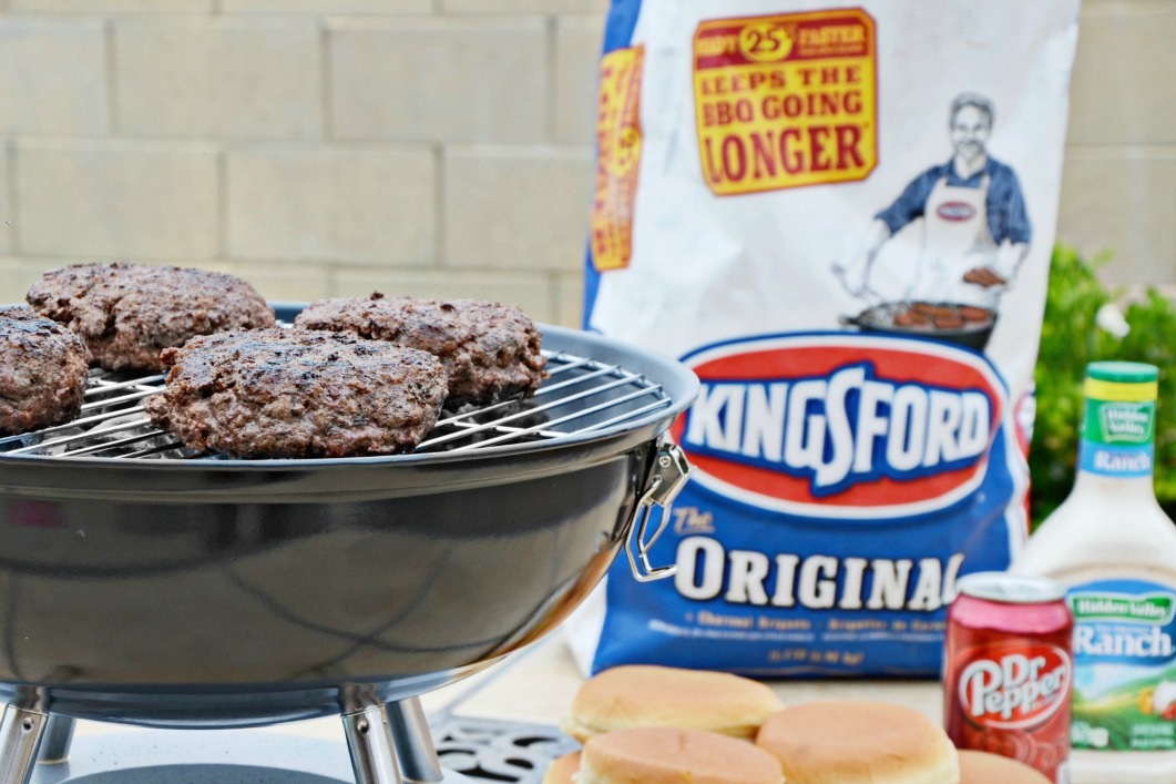 Dr Pepper Ranch Burgers are best when cooked on a charcoal grill with Kingsford® Charcoal.