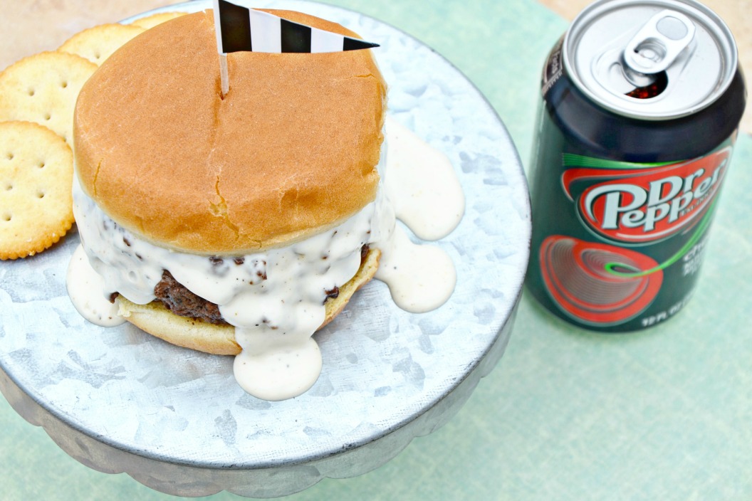 We served our burgers with RITZ crackers and Dr Pepper Cherry for the ultimate football kickoff party.